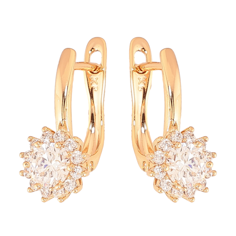 Сережки Xuping колір Позолота 18К англійський замок "Візерунок з кристалами"