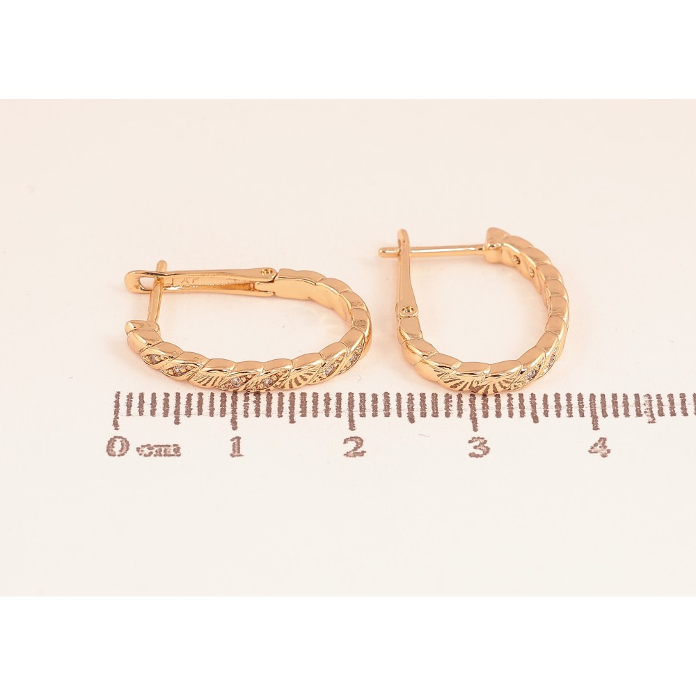 Сережки Xuping колір Позолота 18К англійський замок "Візерунок з кристалами"