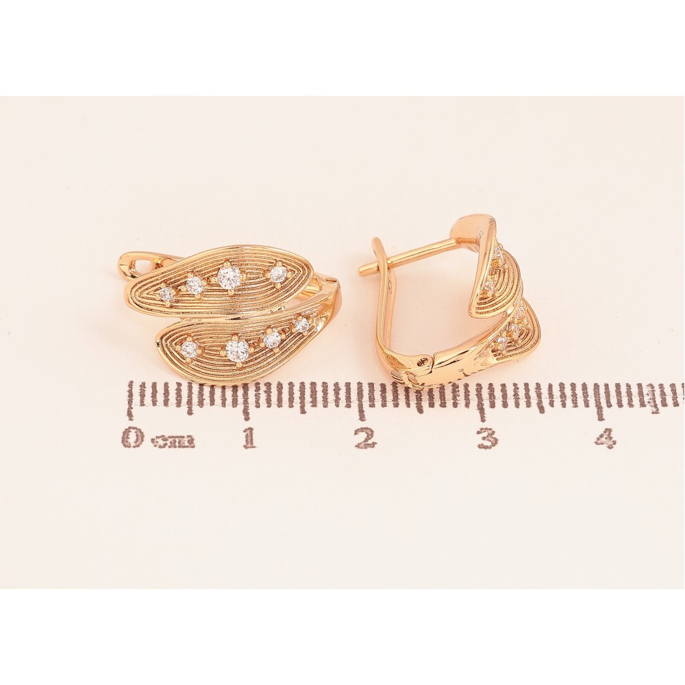 Сережки Xuping колір Позолота 18К англійський замок "Візерунок з кристалами"