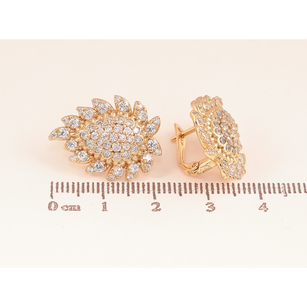 Сережки Xuping колір Позолота 18К англійський замок "Візерунок з кристалами" фото №1