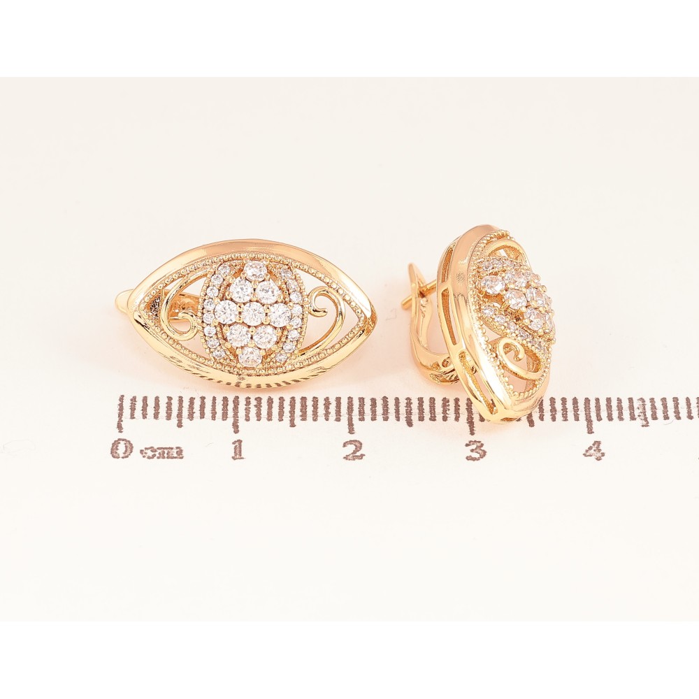 Сережки Xuping колір Позолота 18К англійський замок "Візерунок з кристалами"