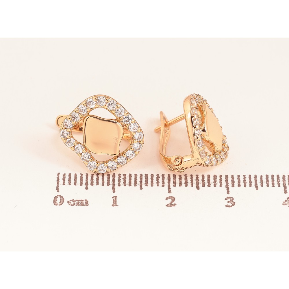 Сережки Xuping колір Позолота 18К англійський замок "Візерунок з кристалами"