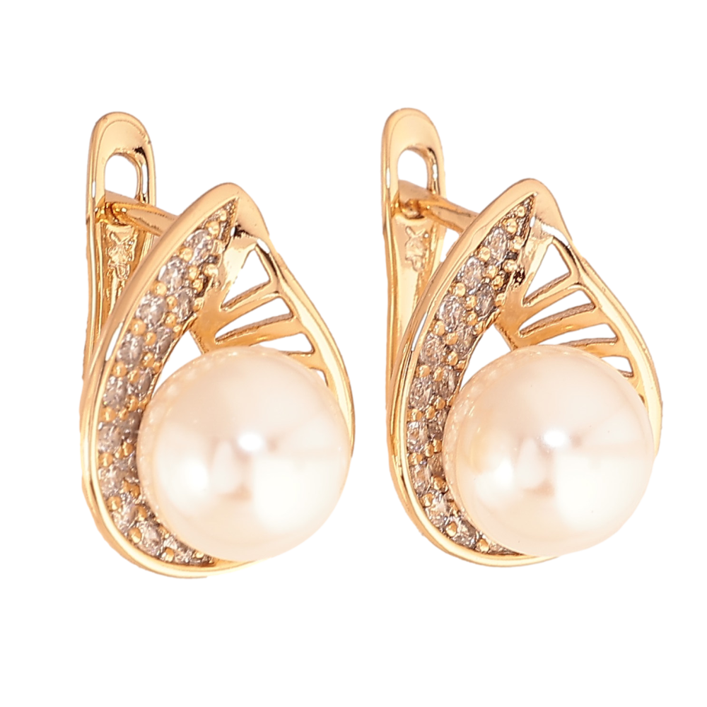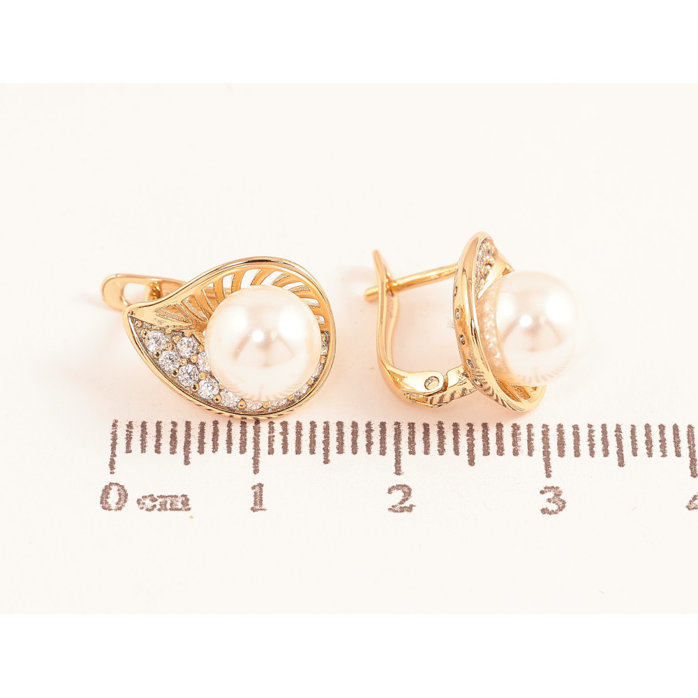 Сережки Xuping колір Позолота 18K англійський замок "Візерунок з кристалами і перлинами" на один бік