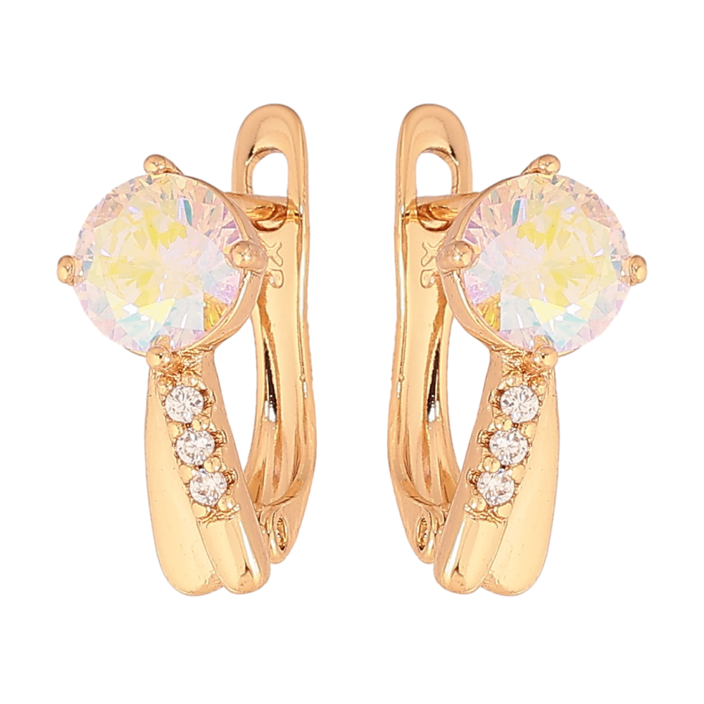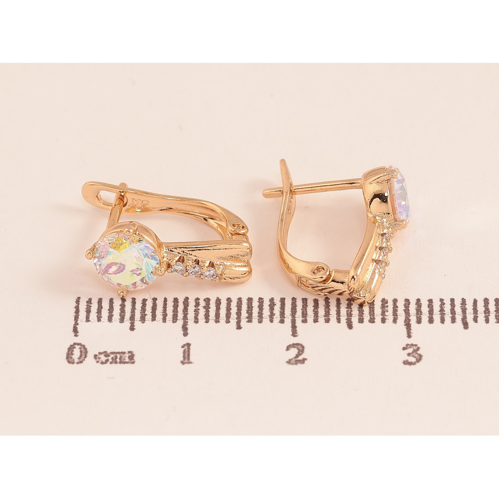Сережки Xuping колір Позолота 18К англійський замок "Візерунок з райдужними кристалами"