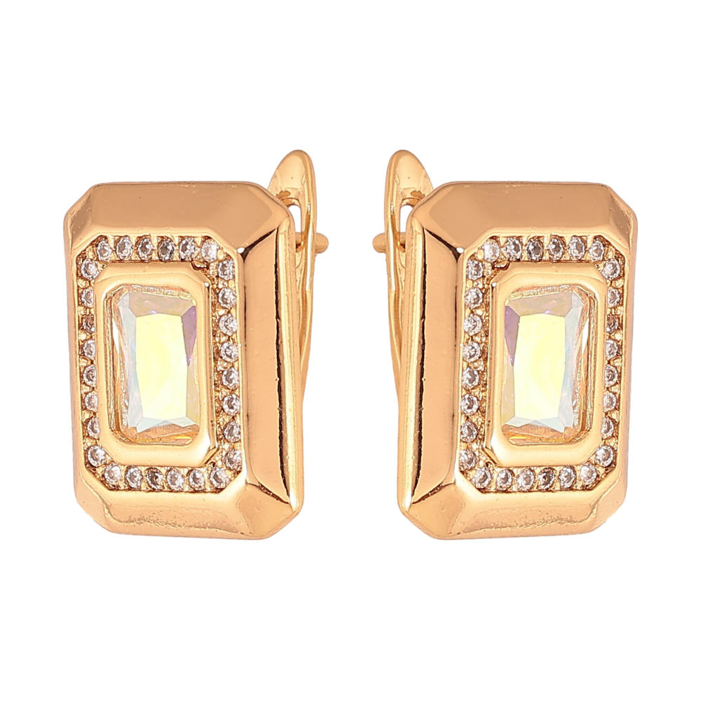 Сережки Xuping колір Позолота 18К англійський замок "Візерунок з райдужними кристалами"