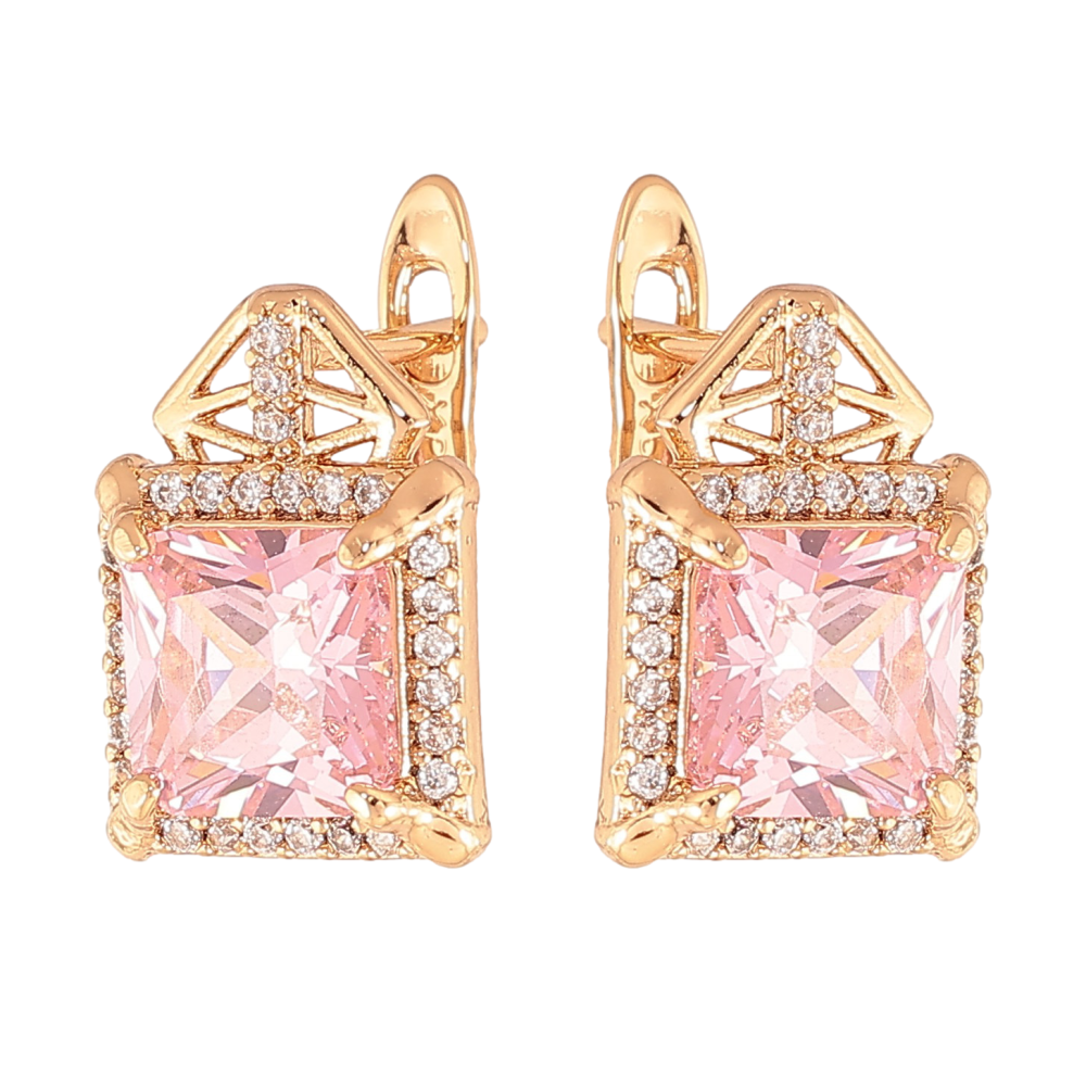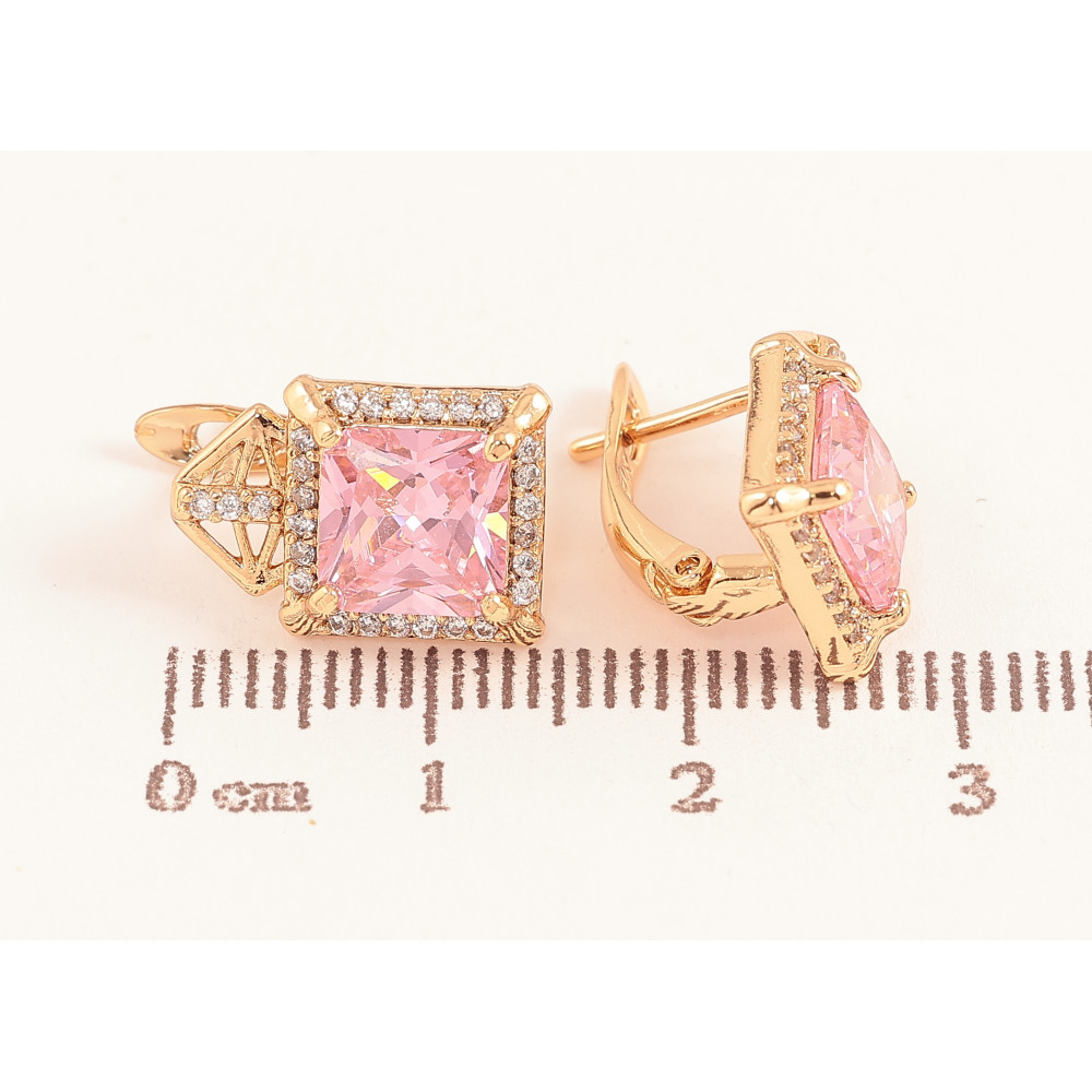 Сережки Xuping колір Позолота 18K англійський замок "Візерунок з рожевими кристалами"