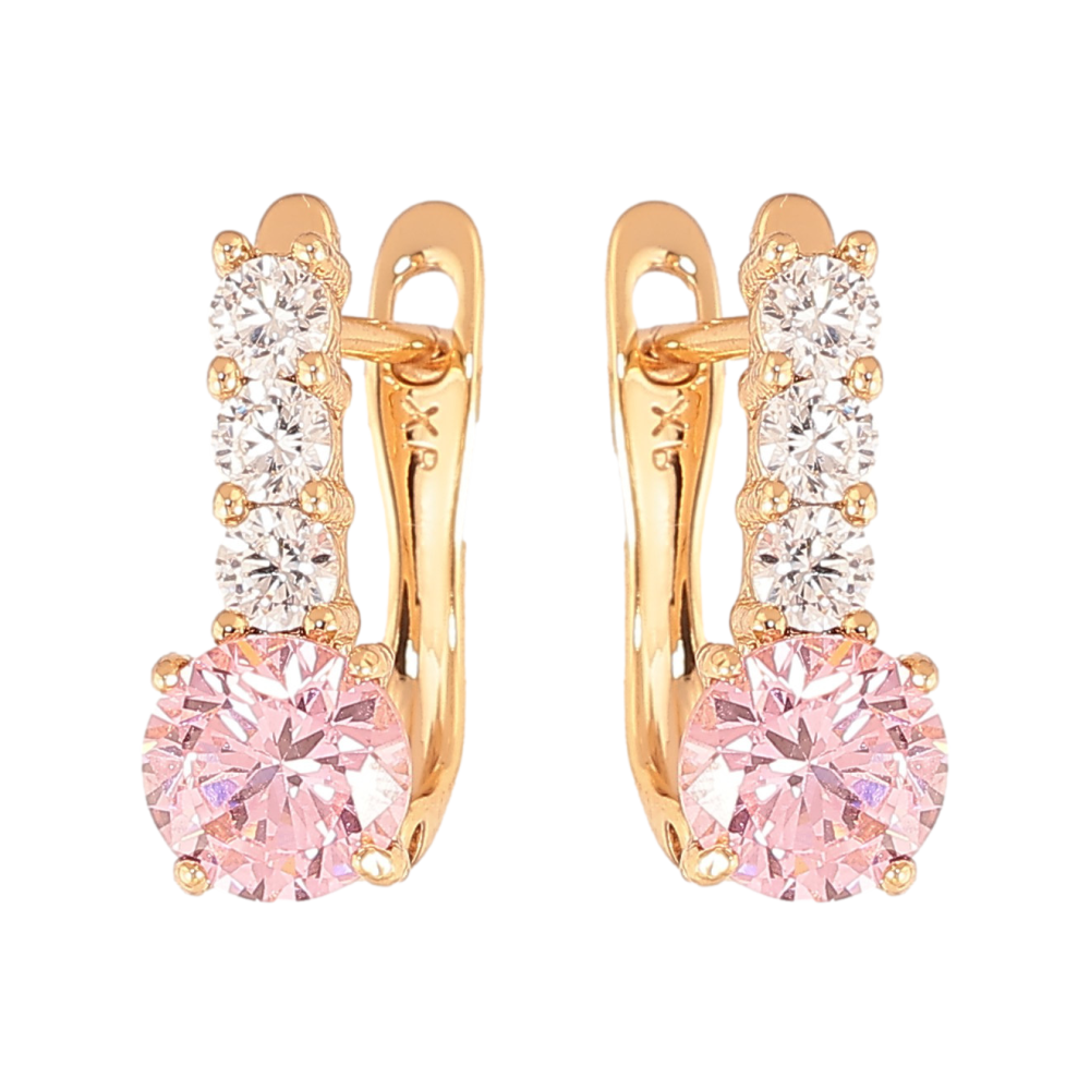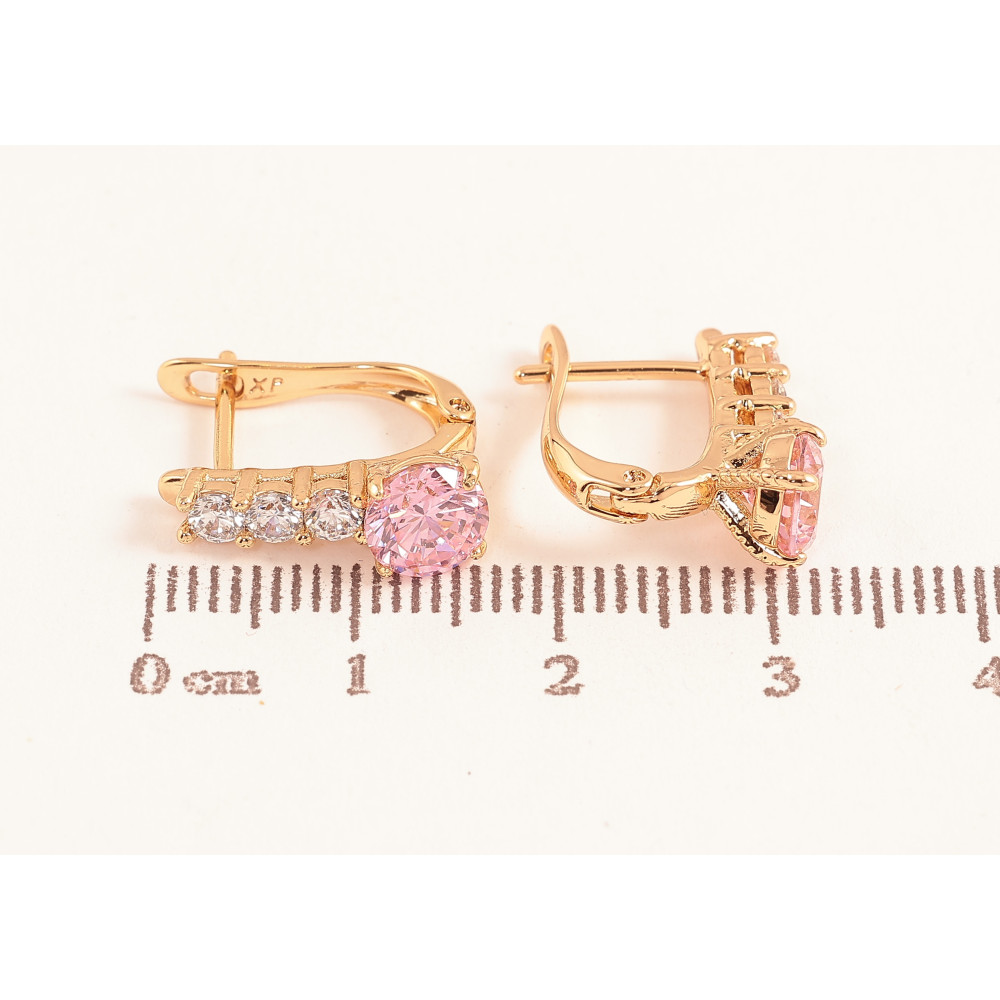Сережки Xuping колір Позолота 18K англійський замок "Візерунок з рожевими кристалами" фото №1