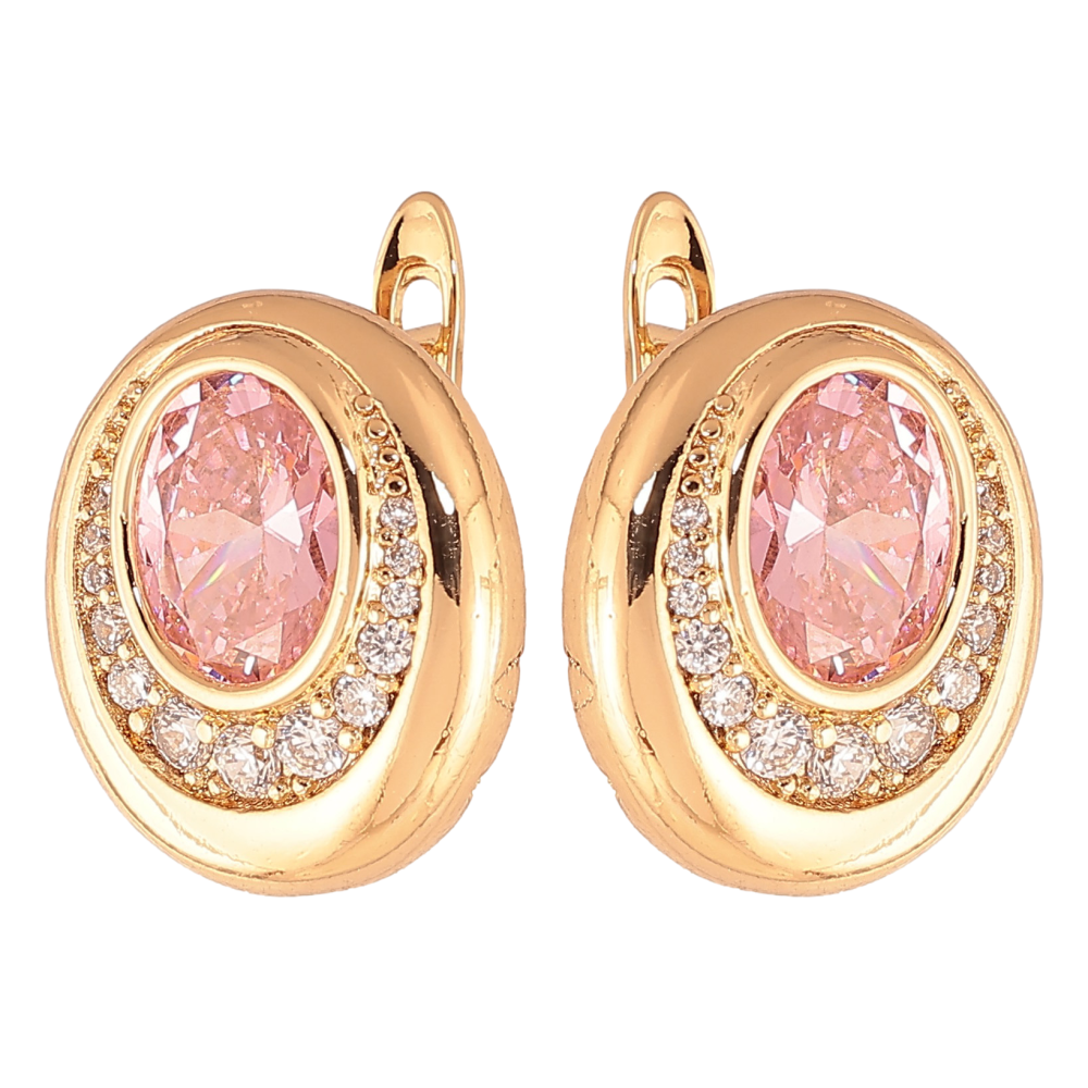 Сережки Xuping колір Позолота 18K англійський замок "Візерунок з рожевими кристалами"