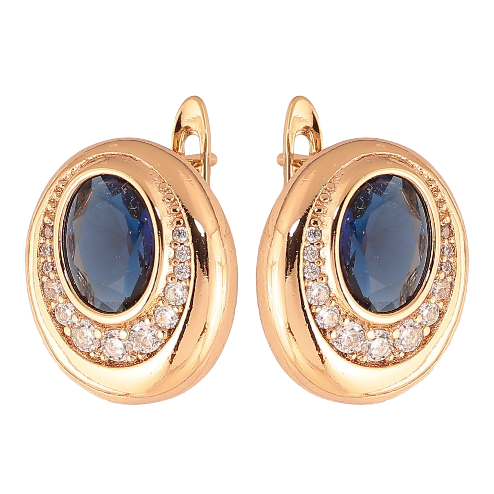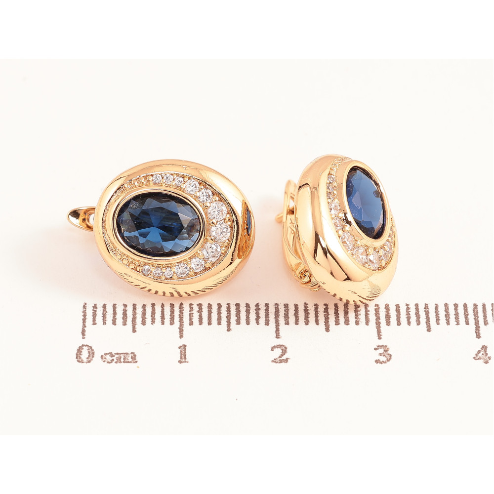 Сережки Xuping колір Позолота 18K англійський замок "Візерунок з синіми кристалами"
