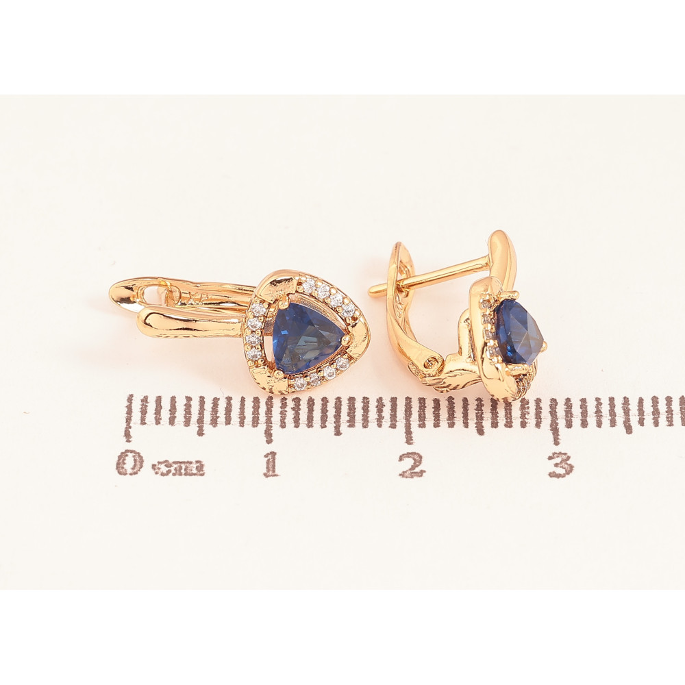 Сережки Xuping колір Позолота 18К англійський замок "Візерунок з синіми кристалами" фото №2