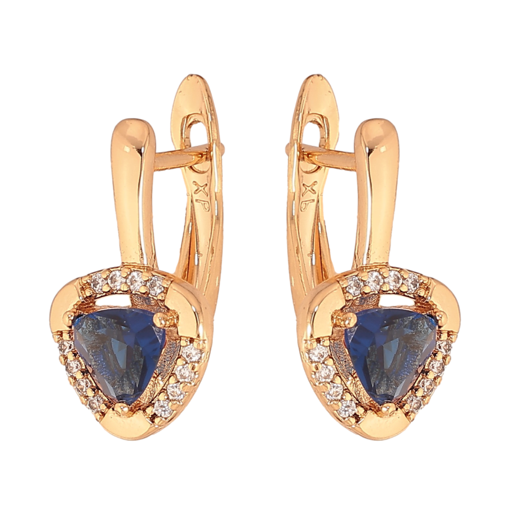 Сережки Xuping колір Позолота 18К англійський замок "Візерунок з синіми кристалами" фото №1