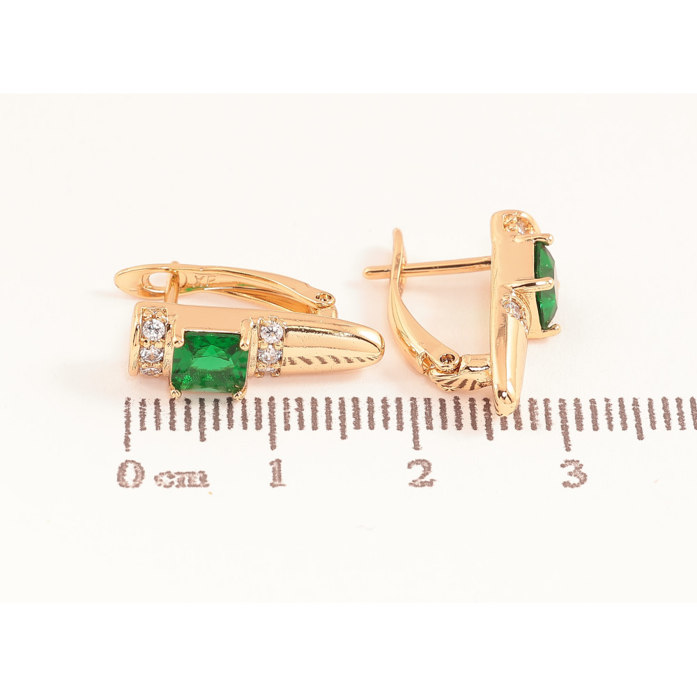 Сережки Xuping колір Позолота 18K англійський замок "Візерунок з зеленими кристалами"