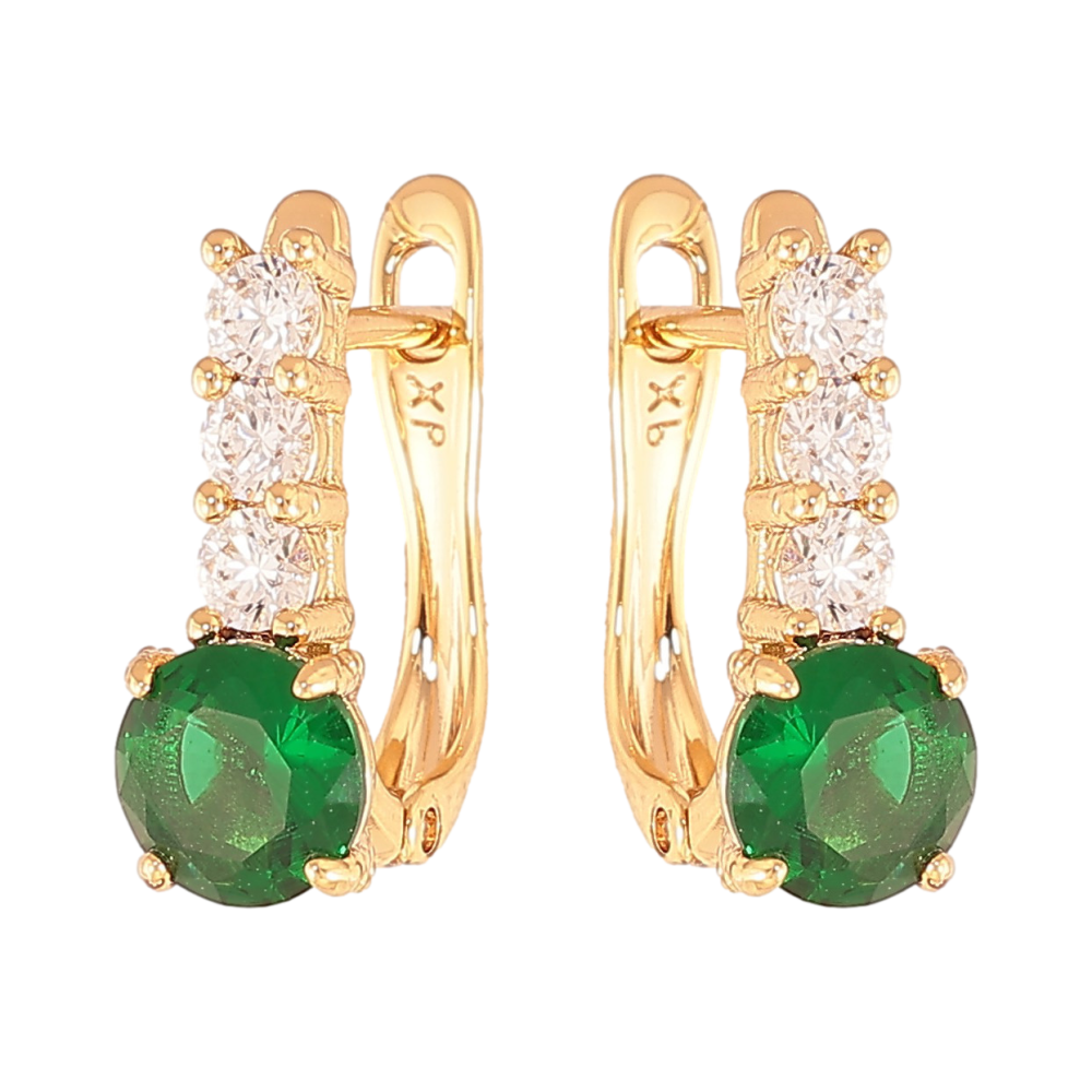 Сережки Xuping колір Позолота 18K англійський замок "Візерунок з зеленими кристалами"