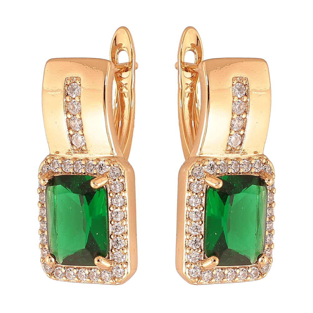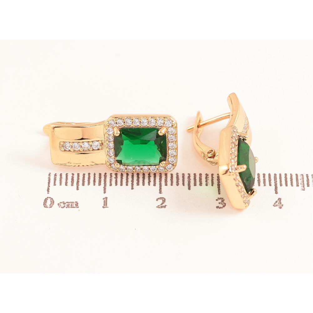 Сережки Xuping колір Позолота 18K англійський замок "Візерунок з зеленими кристалами"