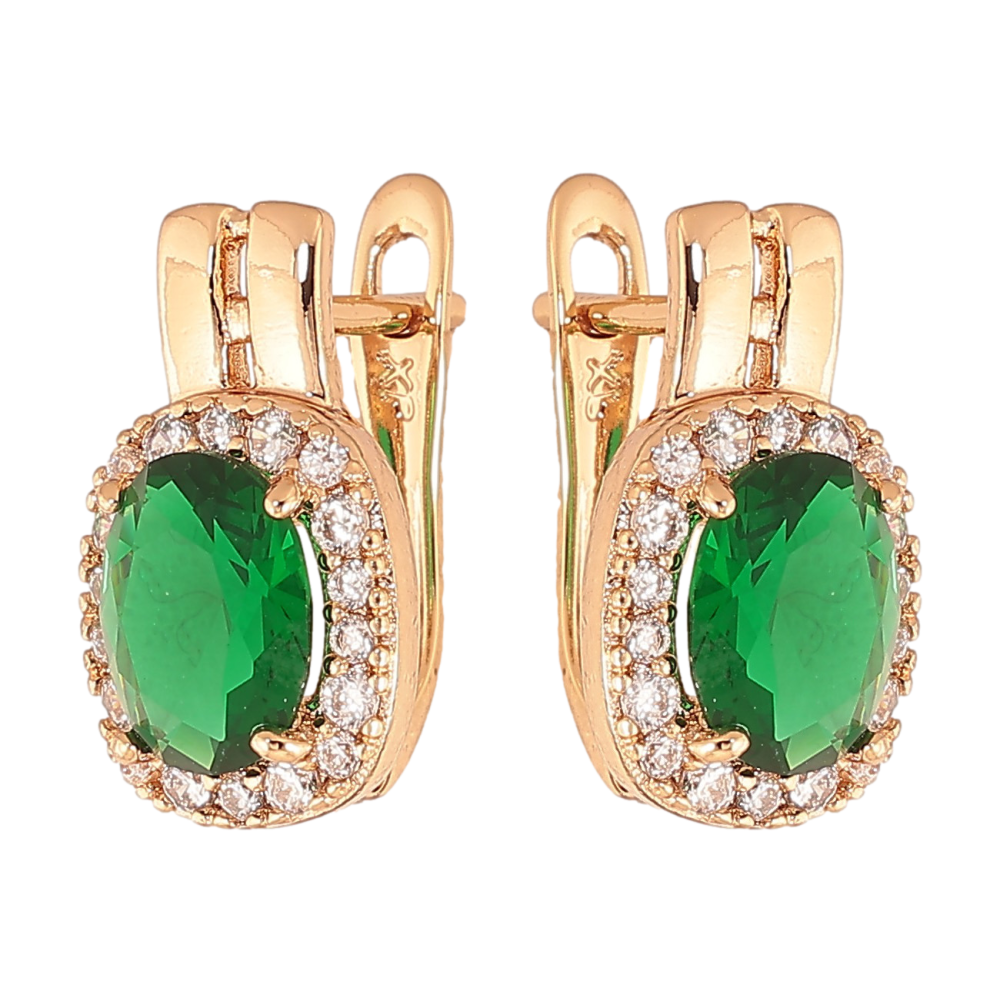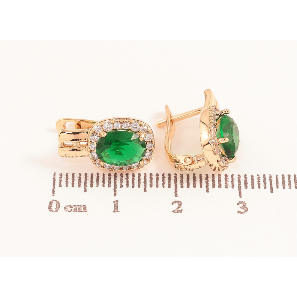 Сережки Xuping колір Позолота 18K англійський замок "Зелені кристали в обрамленні"