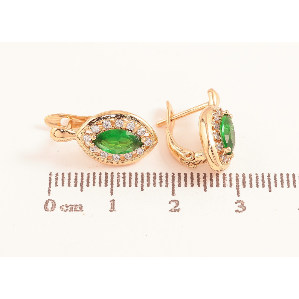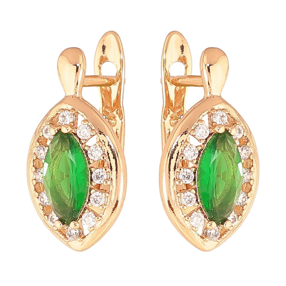 Сережки Xuping колір Позолота 18K англійський замок "Зелені кристали в обрамленні"