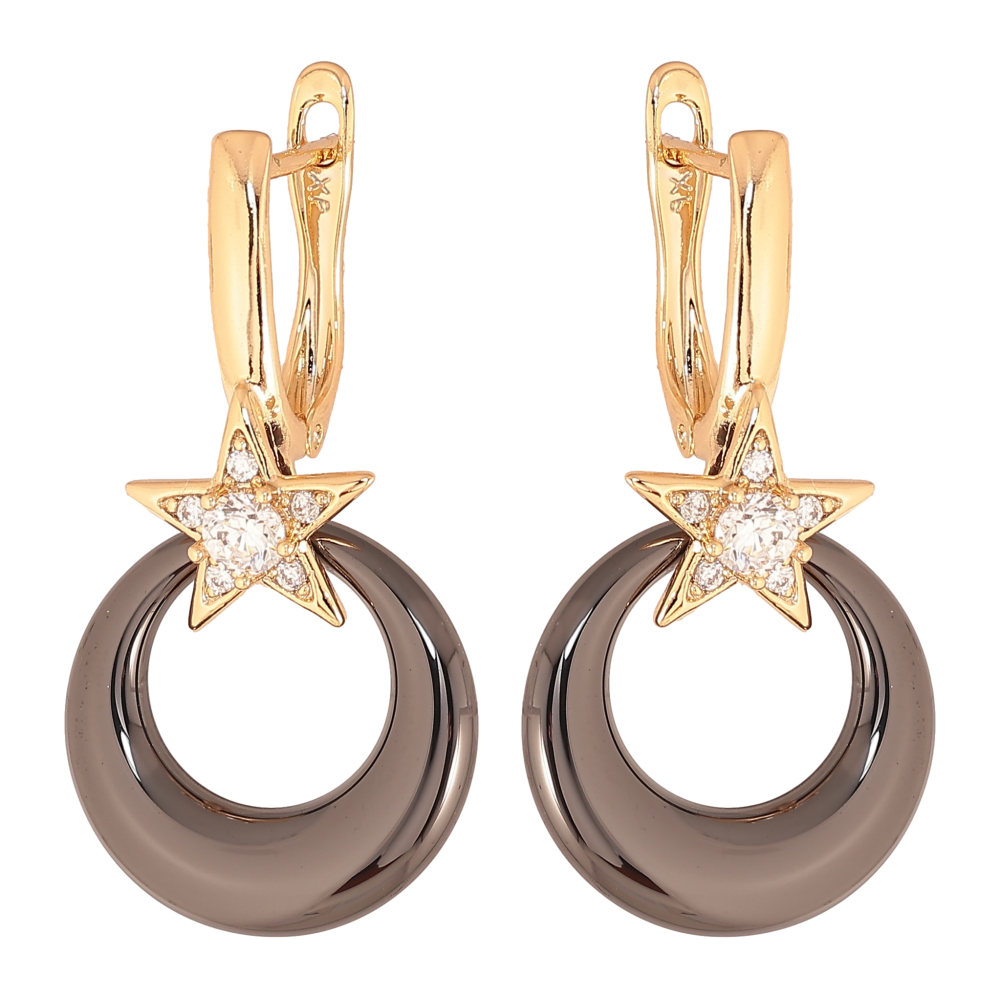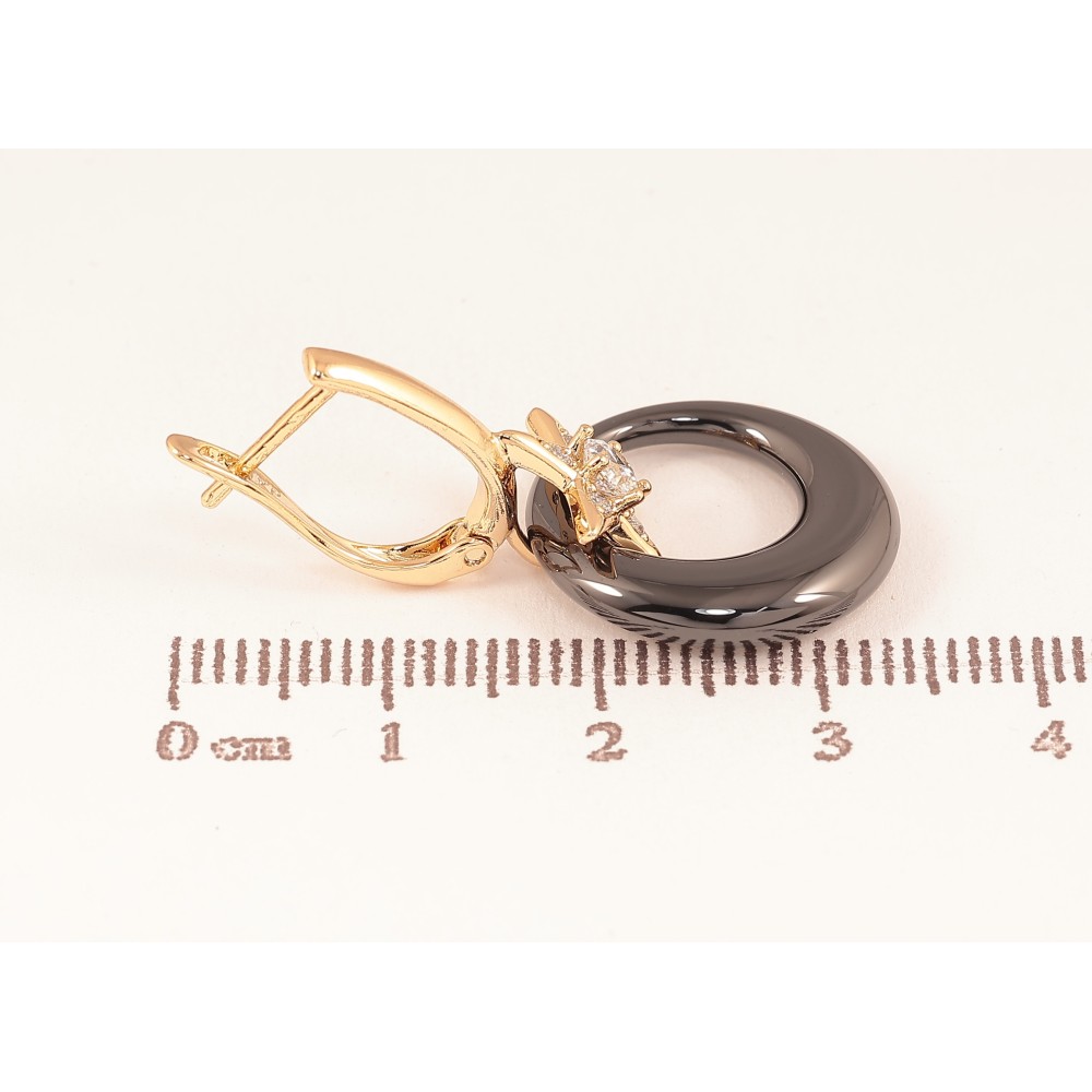 Сережки Xuping колір Позолота 18К англійський замок "Зірки з чорними керамічними підвісками"