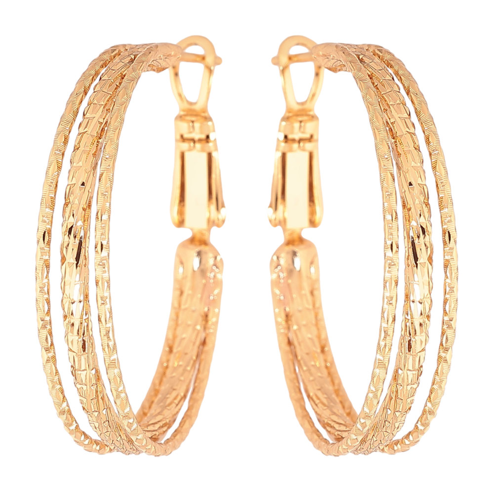 Сережки Xuping колір Позолота 18K кільця (конго) "Декоративний візерунок" ø 3см