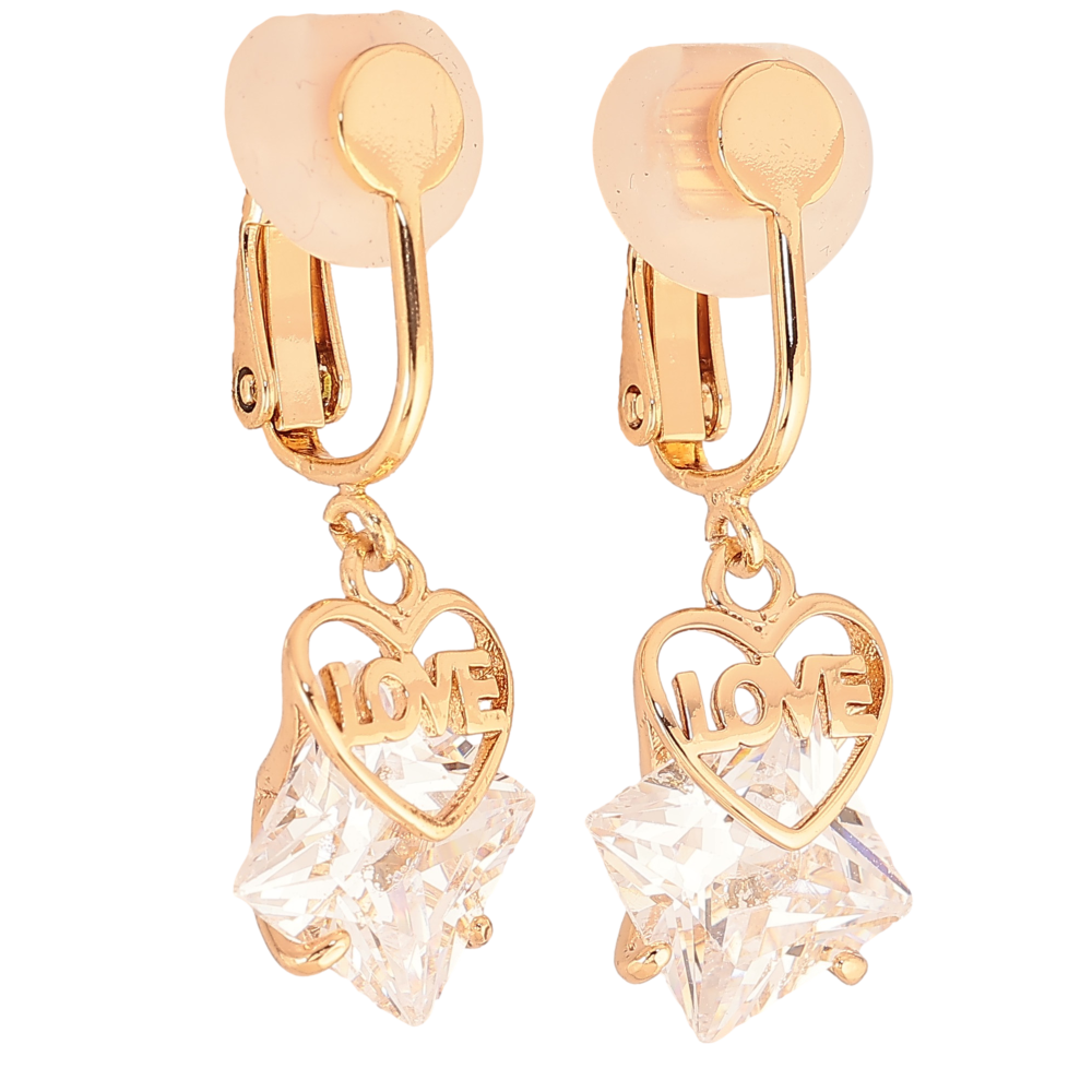 Сережки Xuping колір Позолота 18К кліпси "Кристальні підвіски з сердечками"
