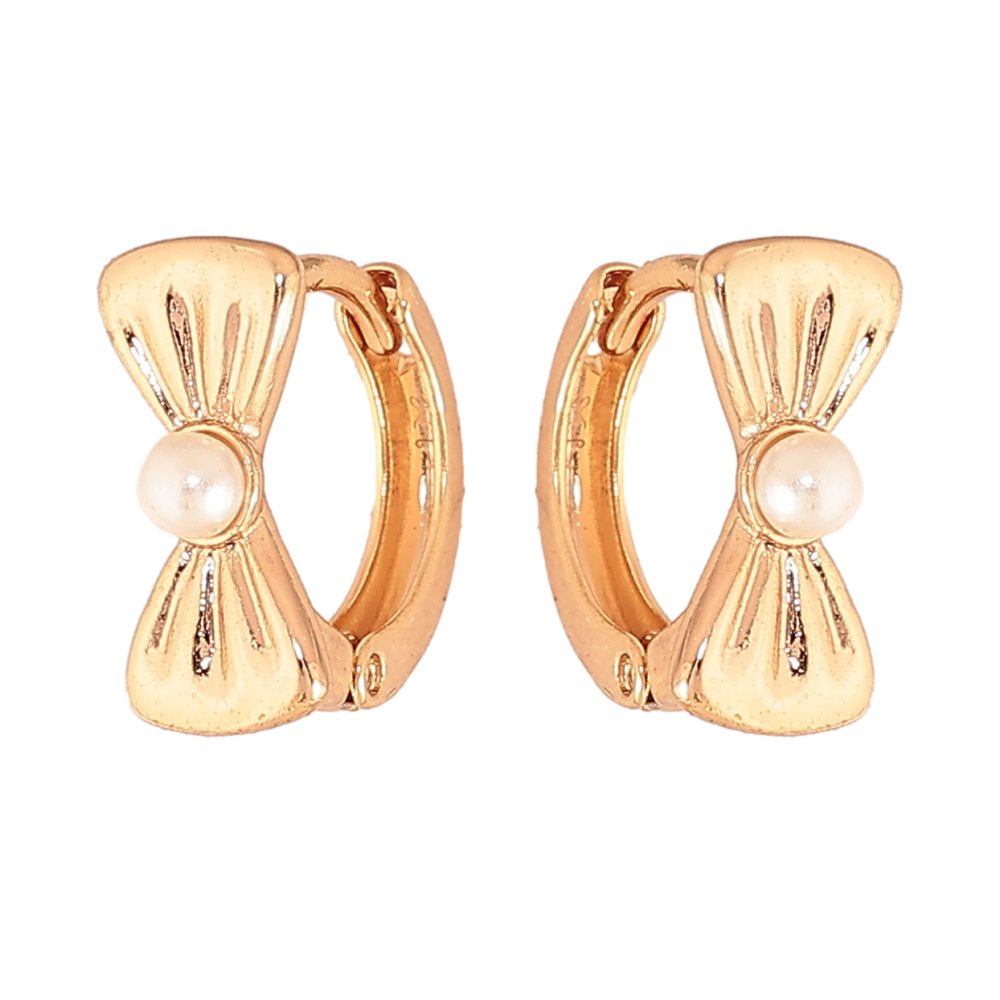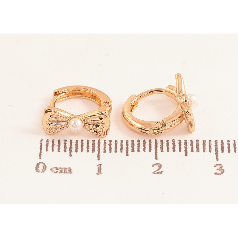 Сережки Xuping колір Позолота 18К колечка "Бантики з перлинами"
