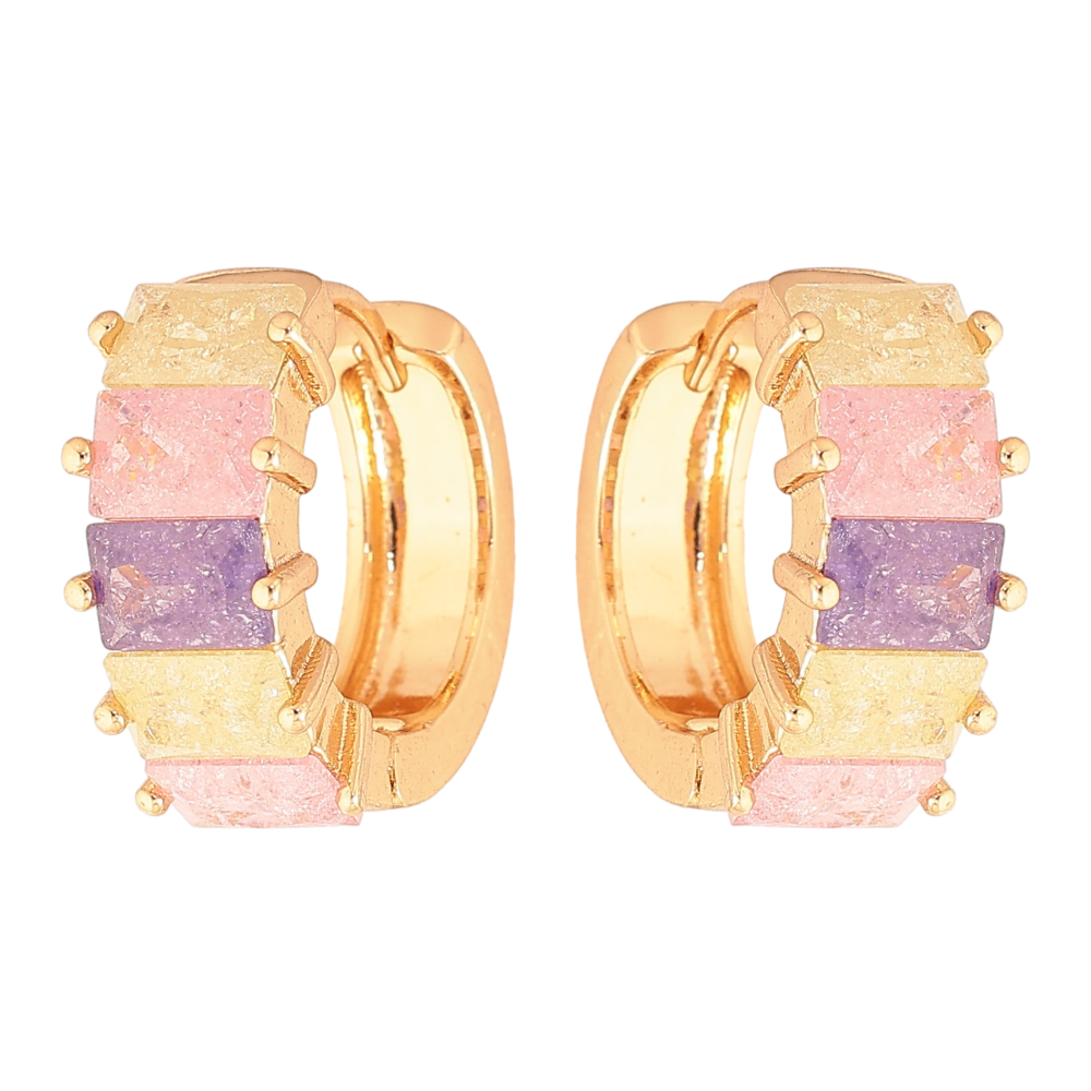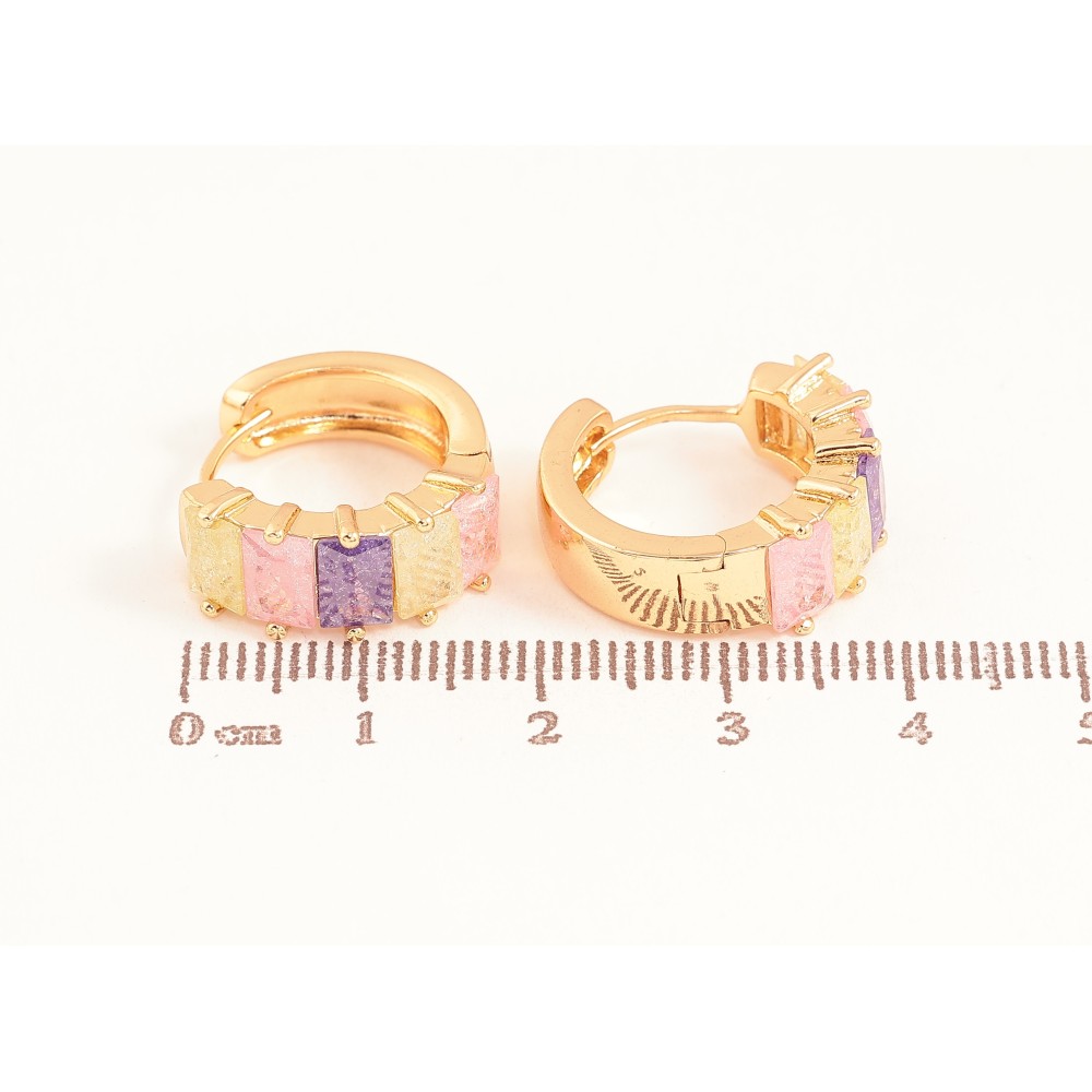 Сережки Xuping колір Позолота 18К колечка "Доріжки різнокольорових кристалів" фото №1