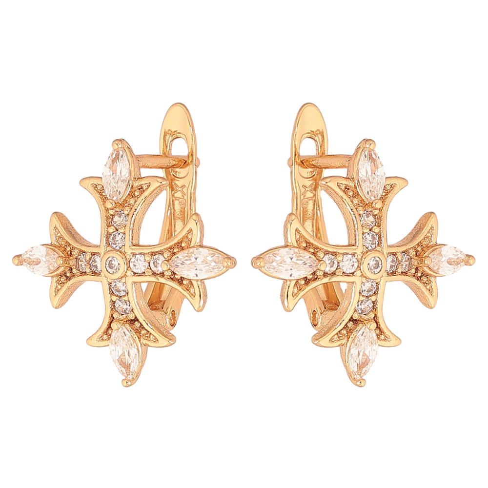 Сережки Xuping колір Позолота 18К англійський замок "Хрестики з кристалами"