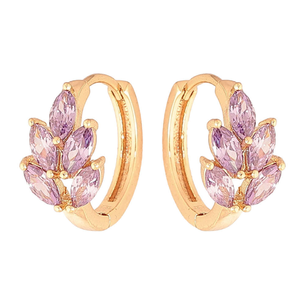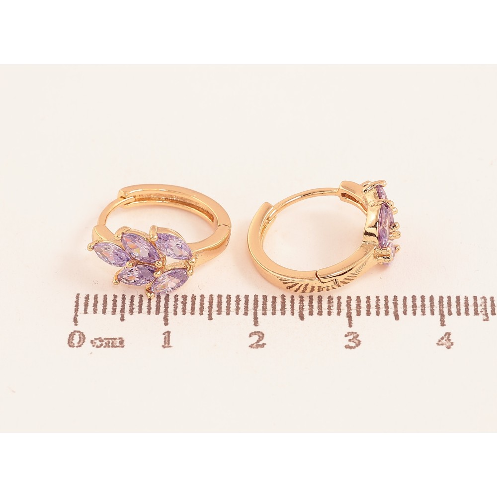 Сережки Xuping колір Позолота 18К колечка "Листочки з бузковими кристалами"