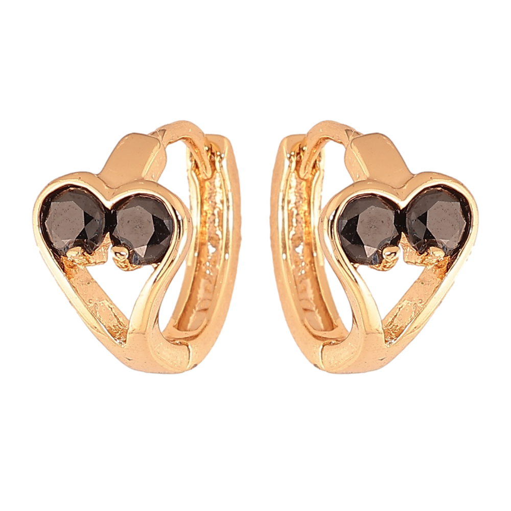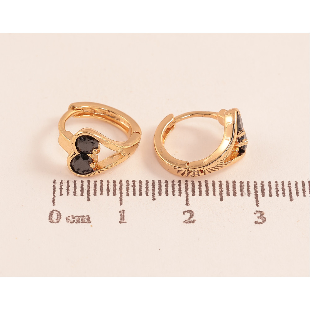 Сережки Xuping колір Позолота 18К колечка "Сердечки з чорними кристалами"