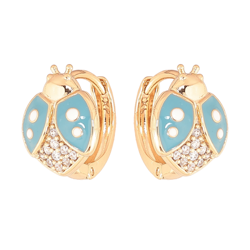 Сережки Xuping колір позолота 18К колечка сонечка з блакитною емаллю і кристалами