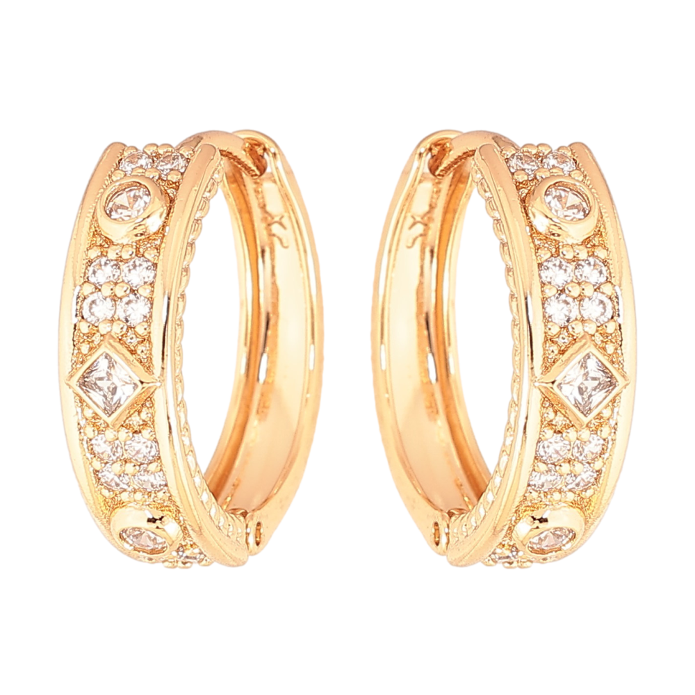 SALE -15% Сережки Xuping колір Позолота 18K колечка "Візерунок з кристалами" фото №1