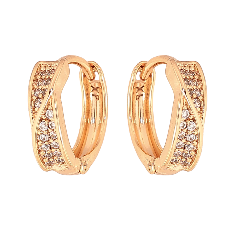 NEW Сережки Xuping колір Позолота 18К колечка "Візерунок з кристалами" фото №1