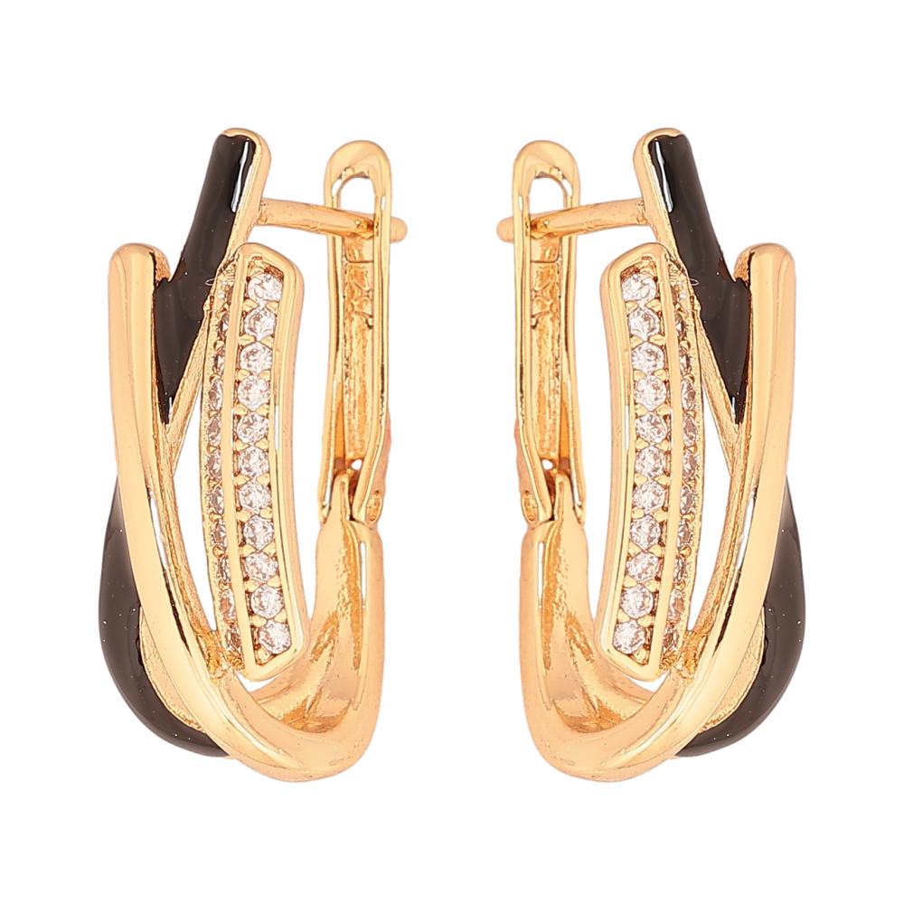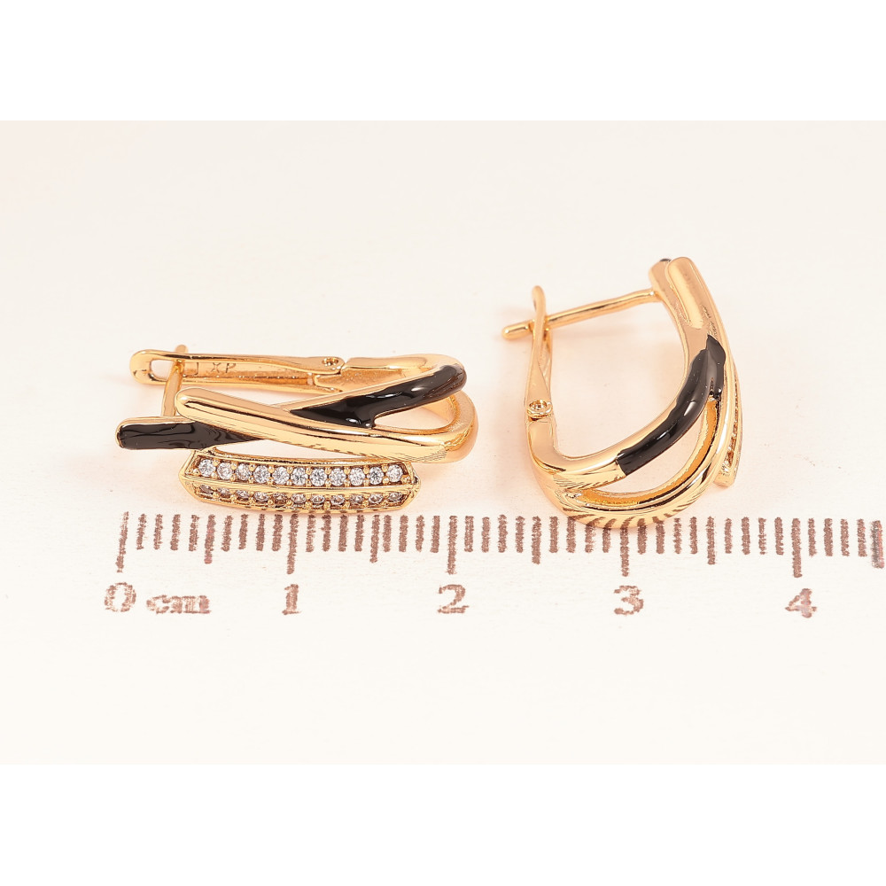 Сережки Xuping колір Позолота 18К англійський замок "Візерунок з кристалами і чорною емаллю"