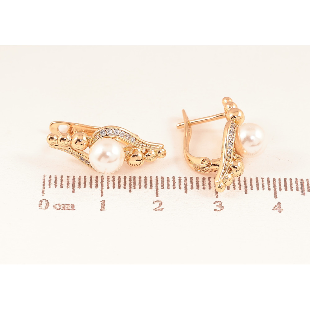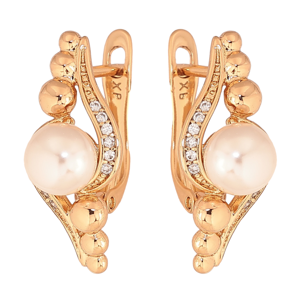 Сережки Xuping колір Позолота 18К англійський замок "Візерунок з перлинами та кристалами"