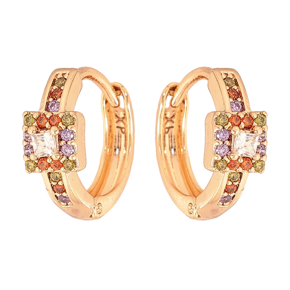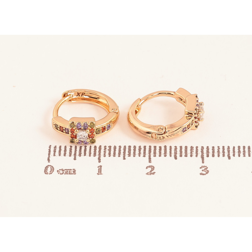 Сережки Xuping колір Позолота 18К колечка "Візерунок з різнокольоровими кристалами"