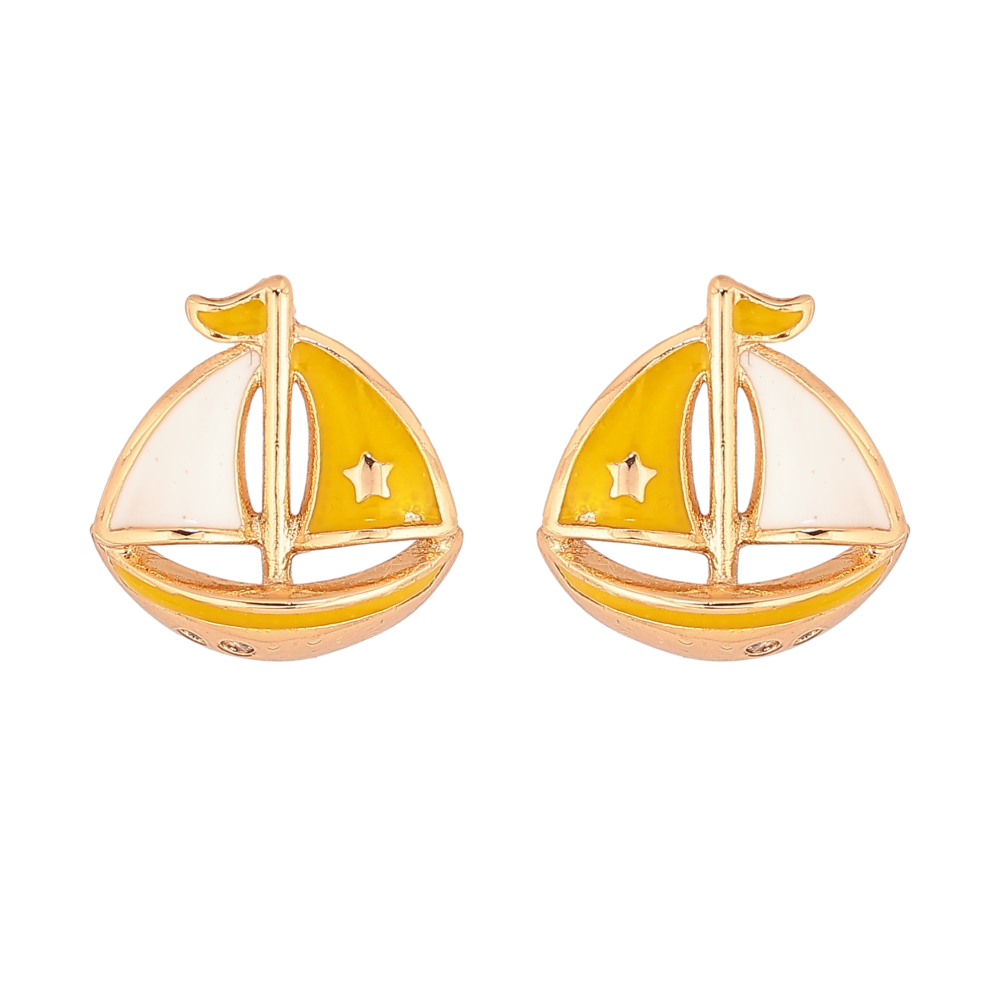 Сережки Xuping колір Позолота 18К пусети "Кораблики з жовто-білою емаллю"
