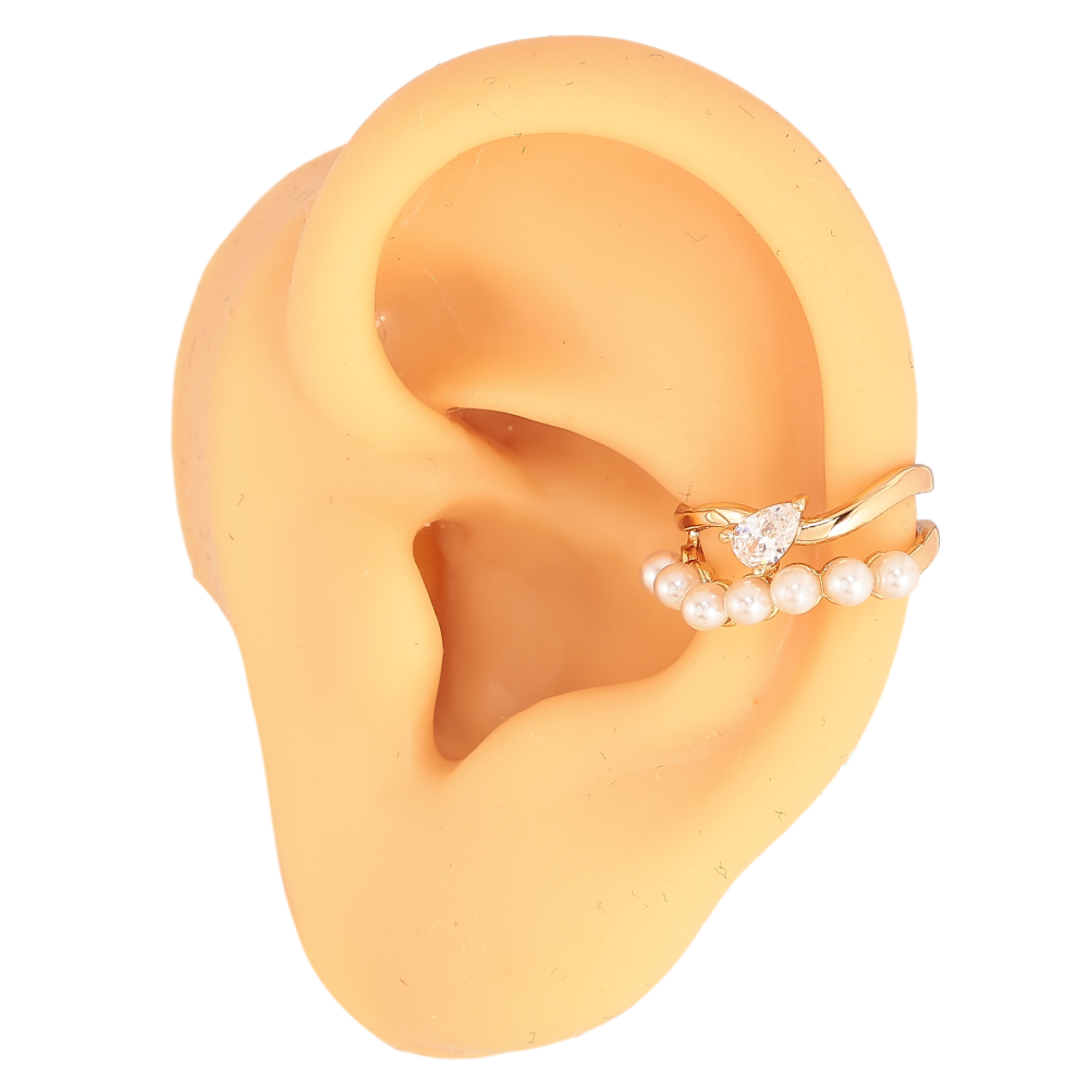 Сережки Xuping колір Позолота 18K моно-каффа "Візерунок з кристалом і перлинами"
