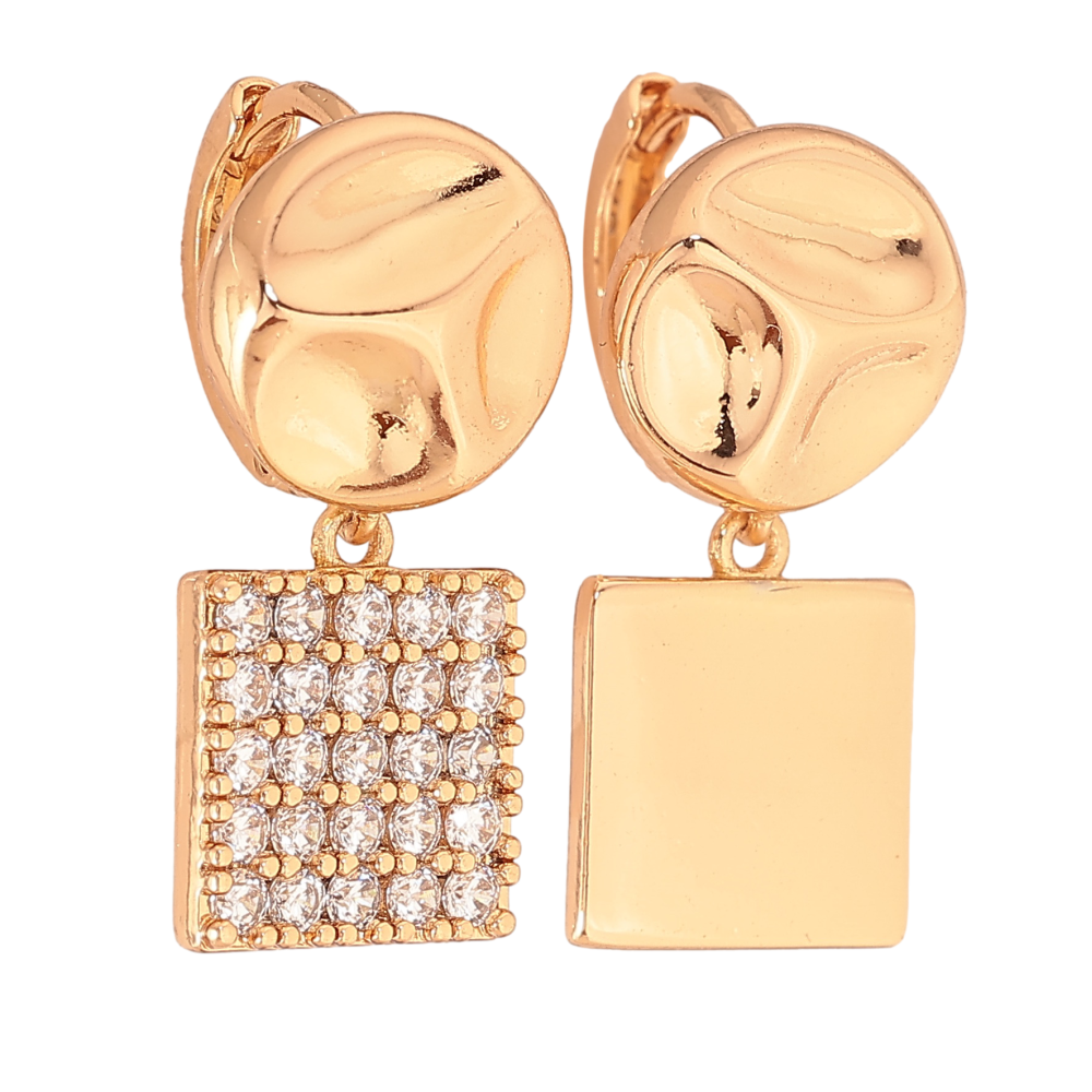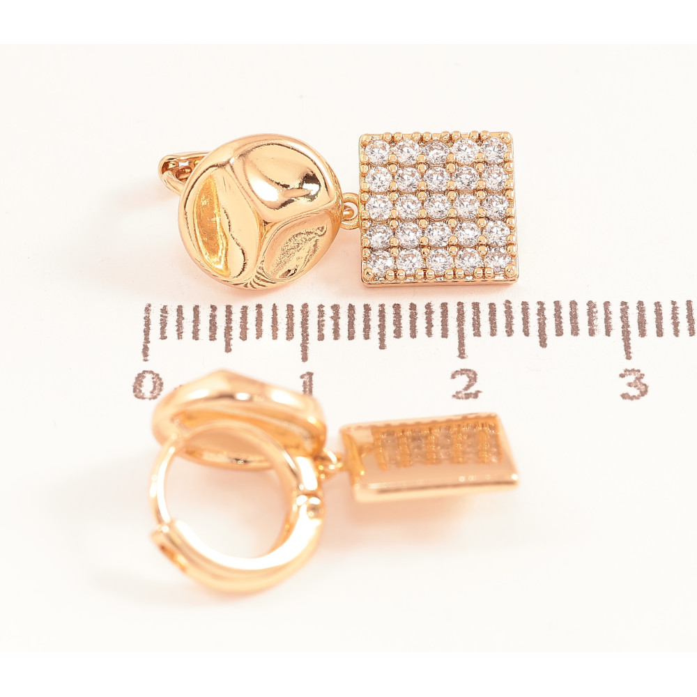 Сережки Xuping колір Позолота 18К підвіски на колечках "Асиметричні з інкрустацією кристалами"