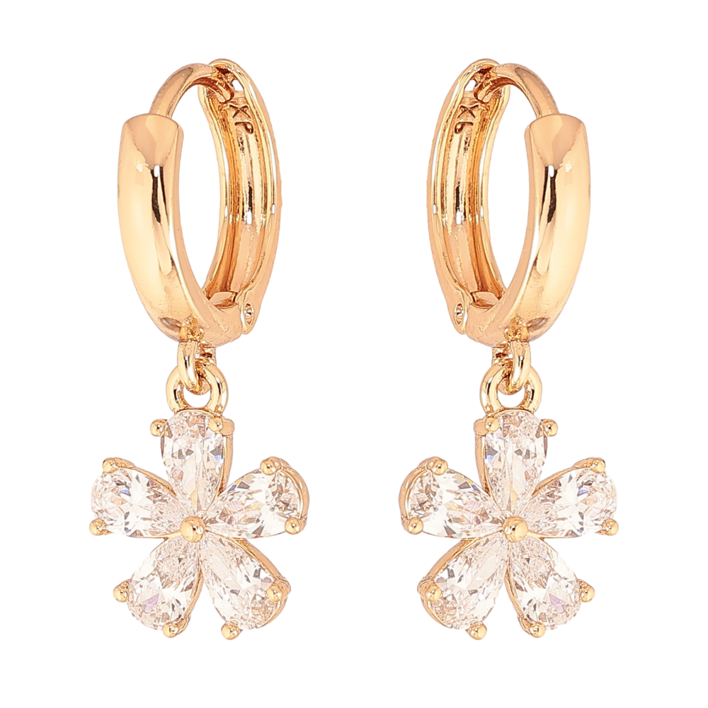 Сережки Xuping колір Позолота 18К підвіски на колечках "Кристальні квіточки"
