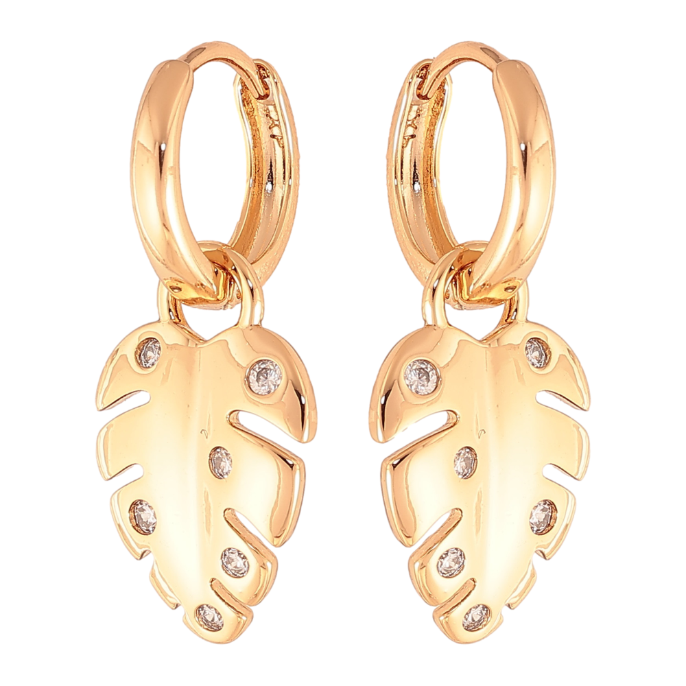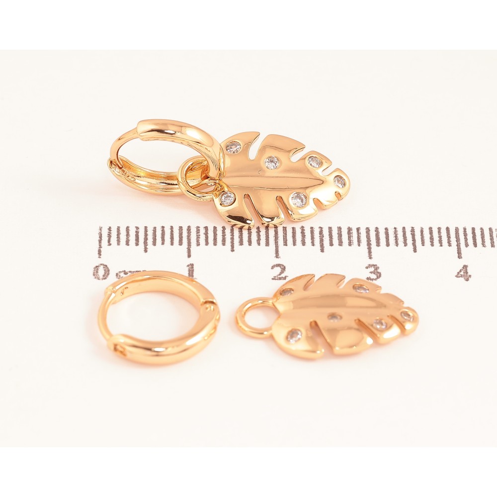 Сережки Xuping колір Позолота 18K підвіски на колечках "Листочки з кристалами" 2 в 1