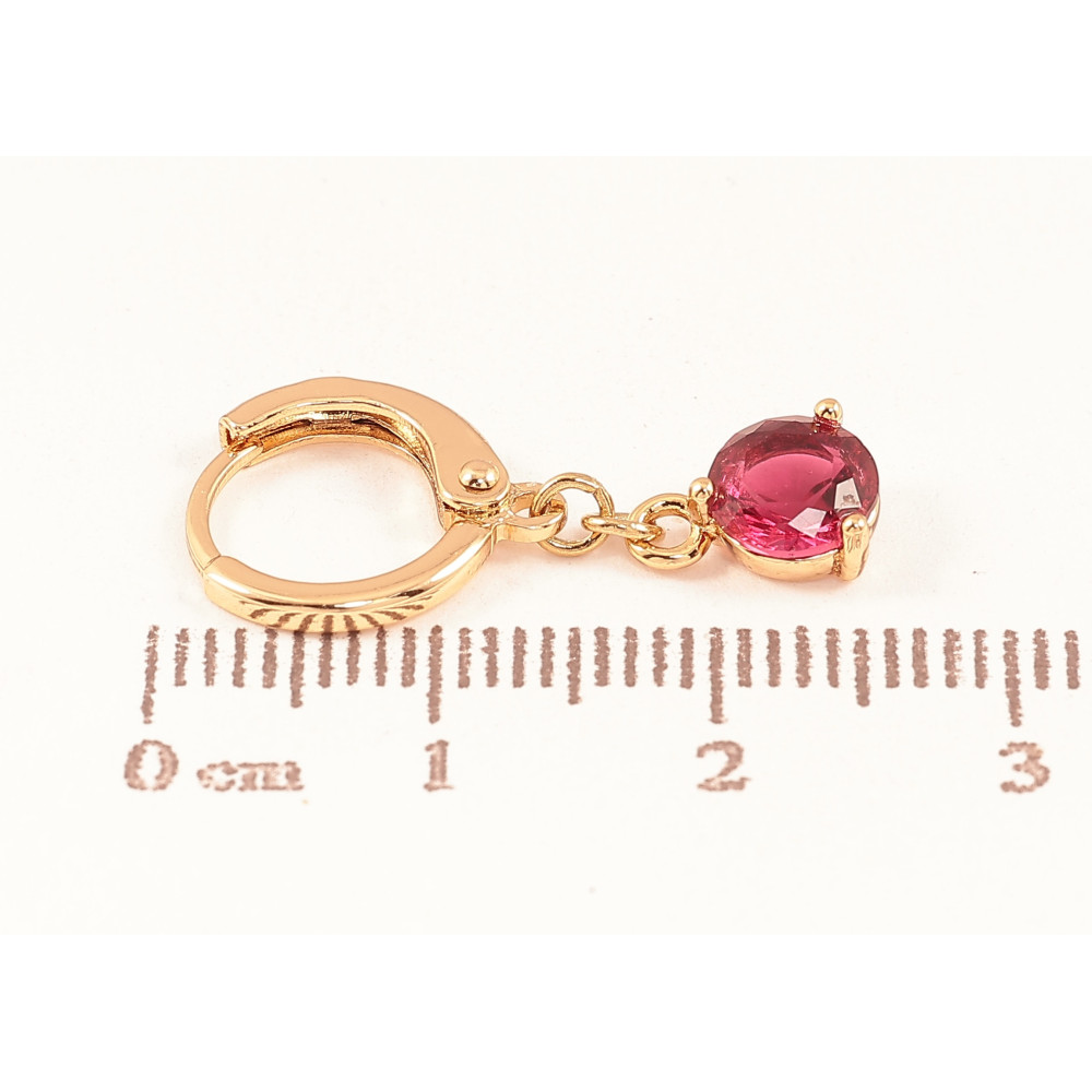 Сережки Xuping колір Позолота 18К підвіски на колечках "Малинові кристали" ø 6мм