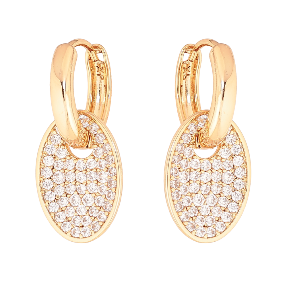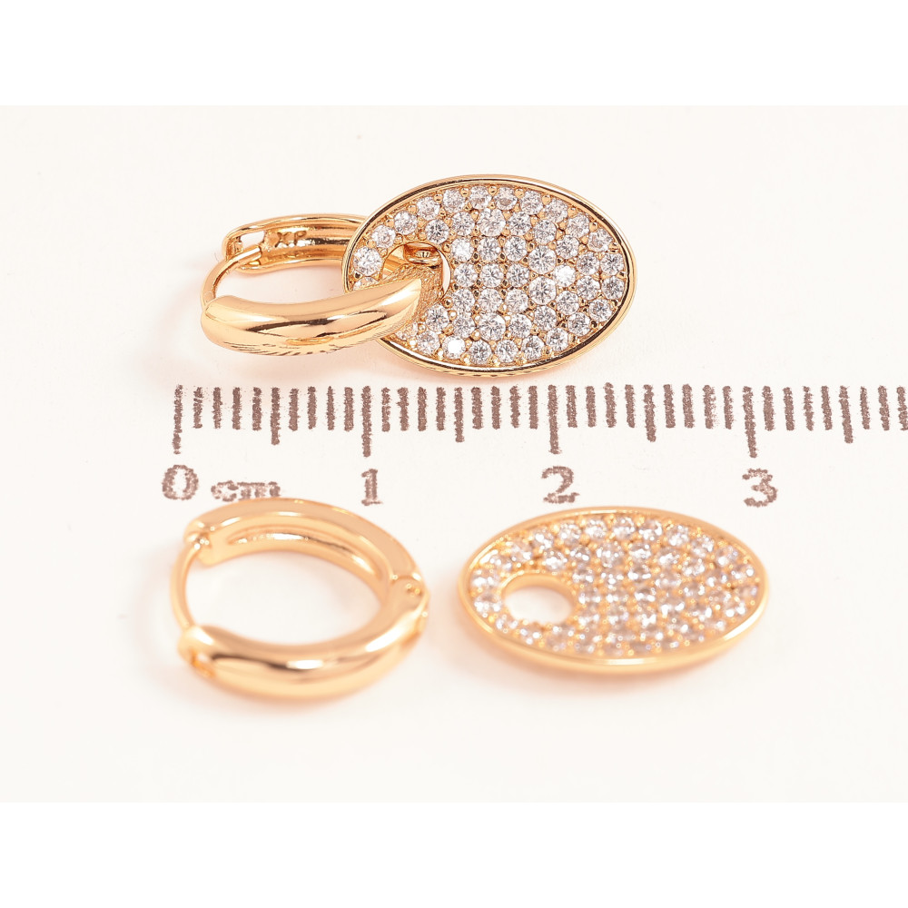 Сережки Xuping колір Позолота 18К підвіски на колечках "Овали з інкрустацією кристалами" 2 в 1