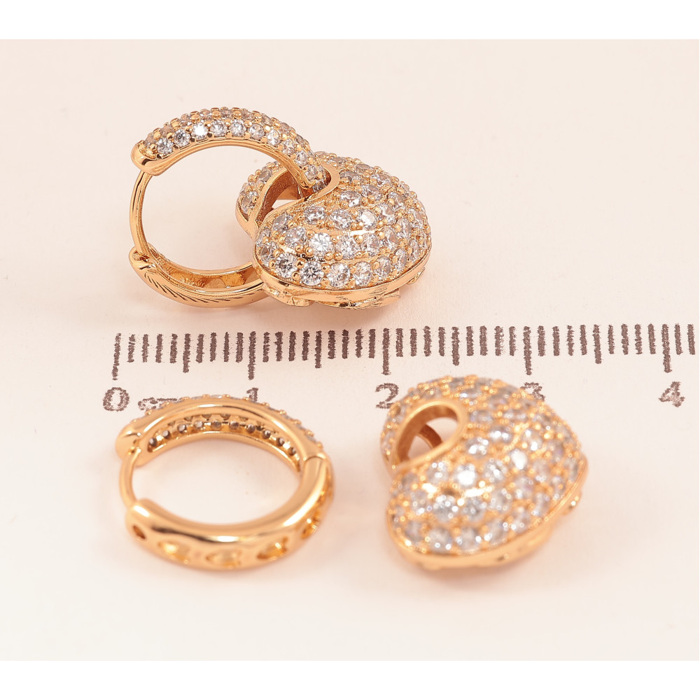 Сережки Xuping колір Позолота 18К підвіски на колечках "Сердечки з інкрустацією кристалами" 2 в 1