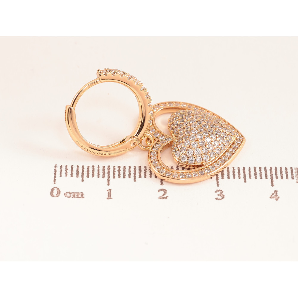 Сережки Xuping колір Позолота 18К підвіски на колечках "Сердечки з інкрустацією кристалами" фото №2