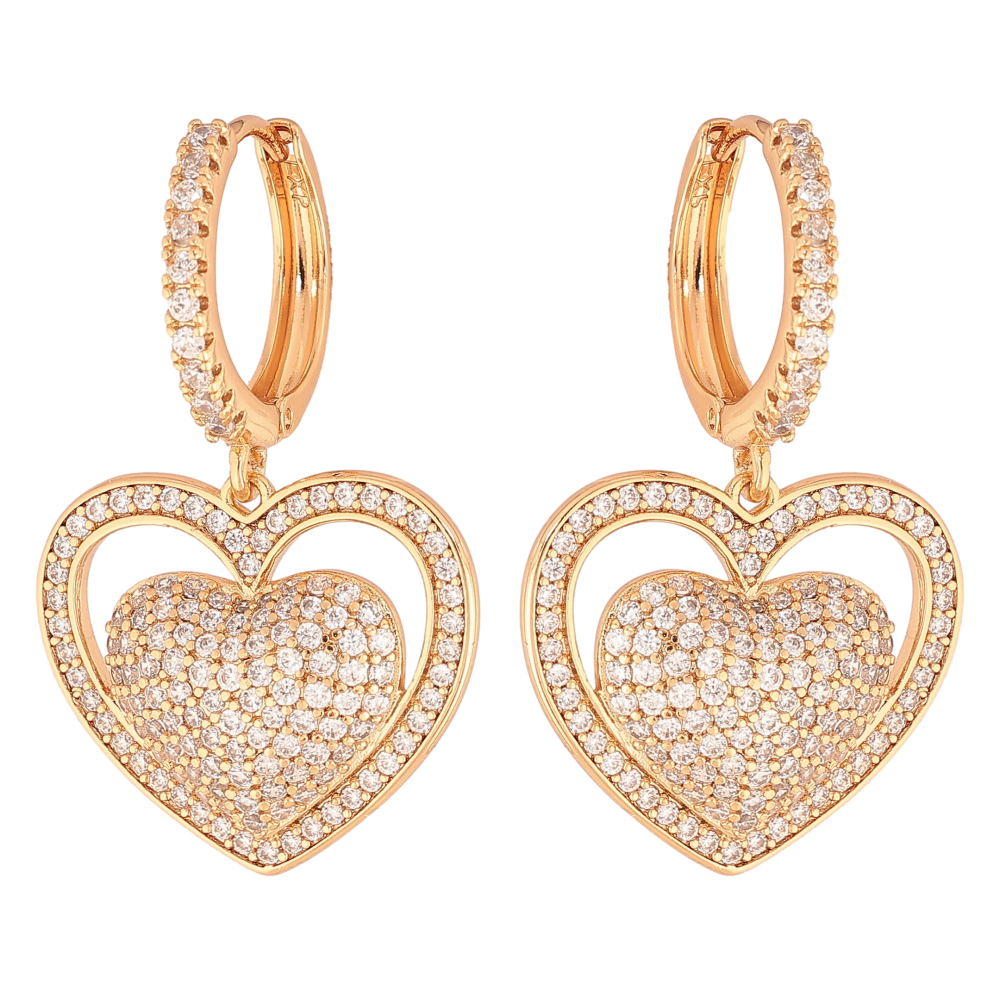 Сережки Xuping колір Позолота 18К підвіски на колечках "Сердечки з інкрустацією кристалами"