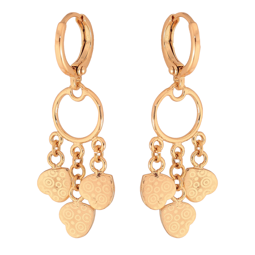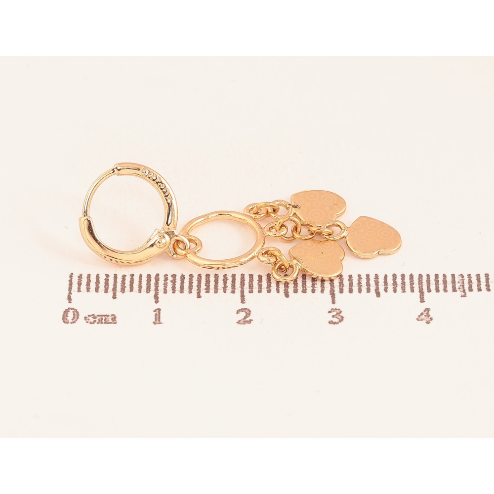 Сережки Xuping колір Позолота 18К підвіски на колечках "Сердечки з візерунком напиленням"