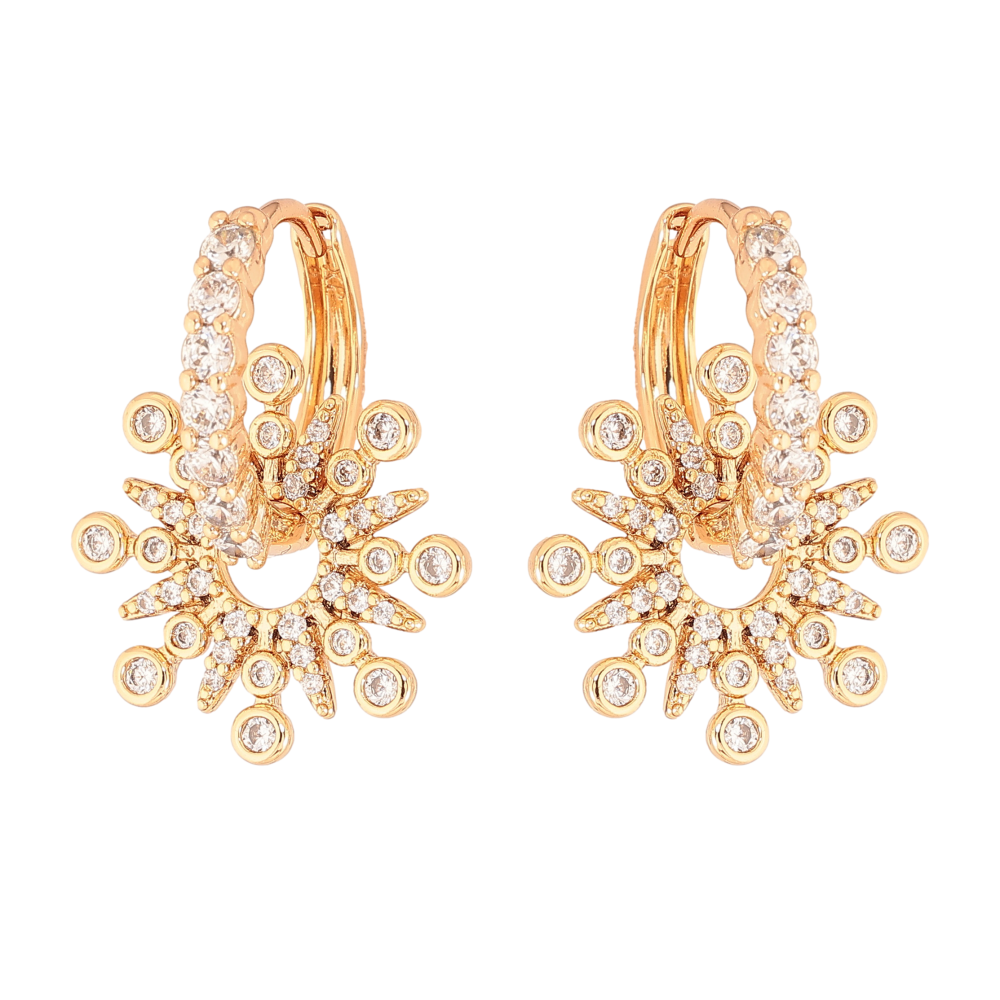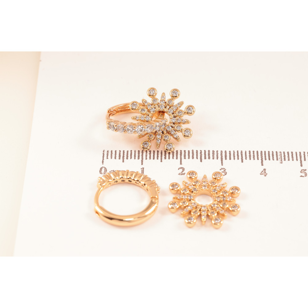 Сережки Xuping колір Позолота 18К підвіски на колечках "Сніжинки з інкрустацією кристалами" 2 в 1