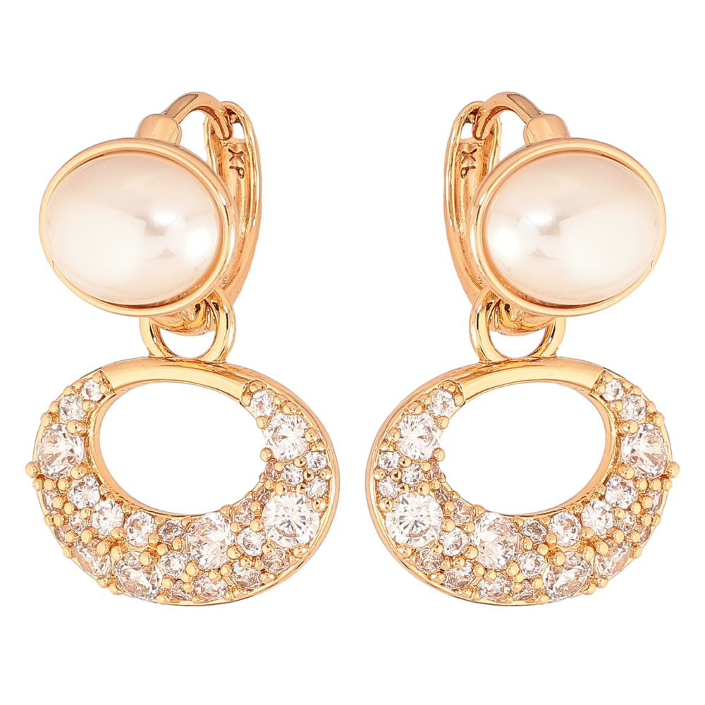 Сережки Xuping колір Позолота 18К підвіски на колечках "Візерунок з кристалами і перлинами" 2 в 1