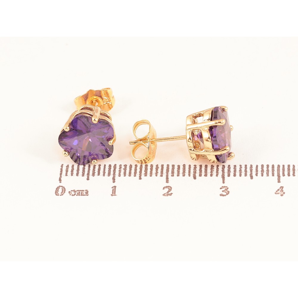 Сережки Xuping колір Позолота 18К пусети "Бузкові кристальні квіточки"
