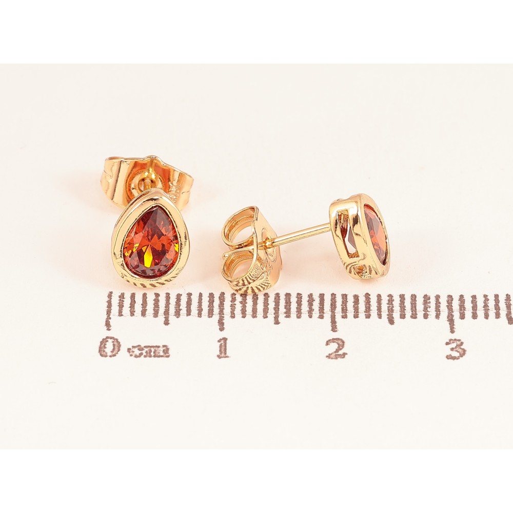 Сережки Xuping колір Позолота 18К пусети "Червоні кристальні крапельки"