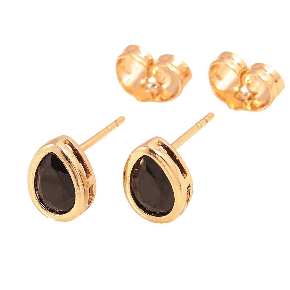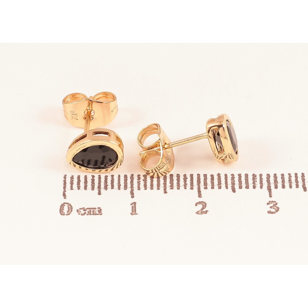 Сережки Xuping колір Позолота 18К пусети "Чорні кристальні крапельки"